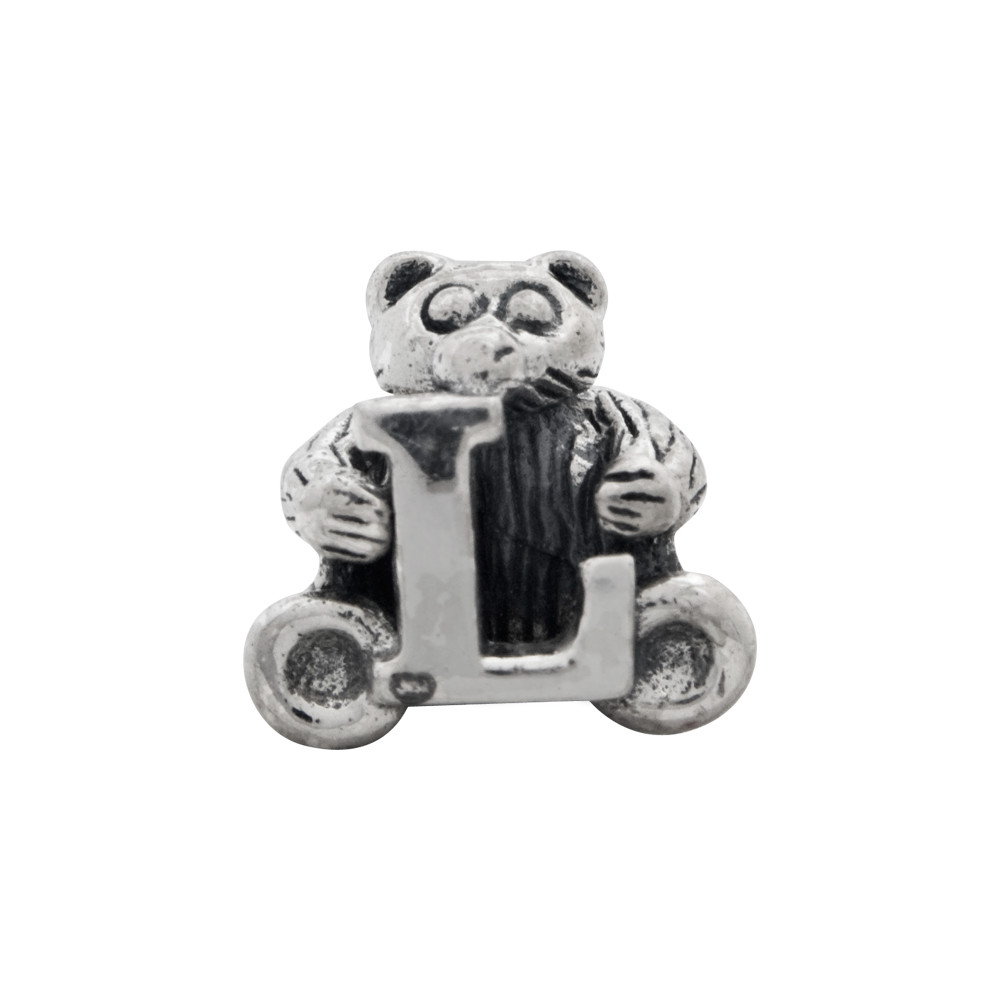 Letter L Teddy Bear Kids Bead .925 Sterling Silver Antiqued Reflection Beads