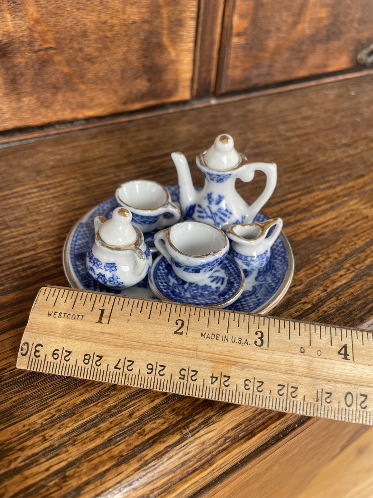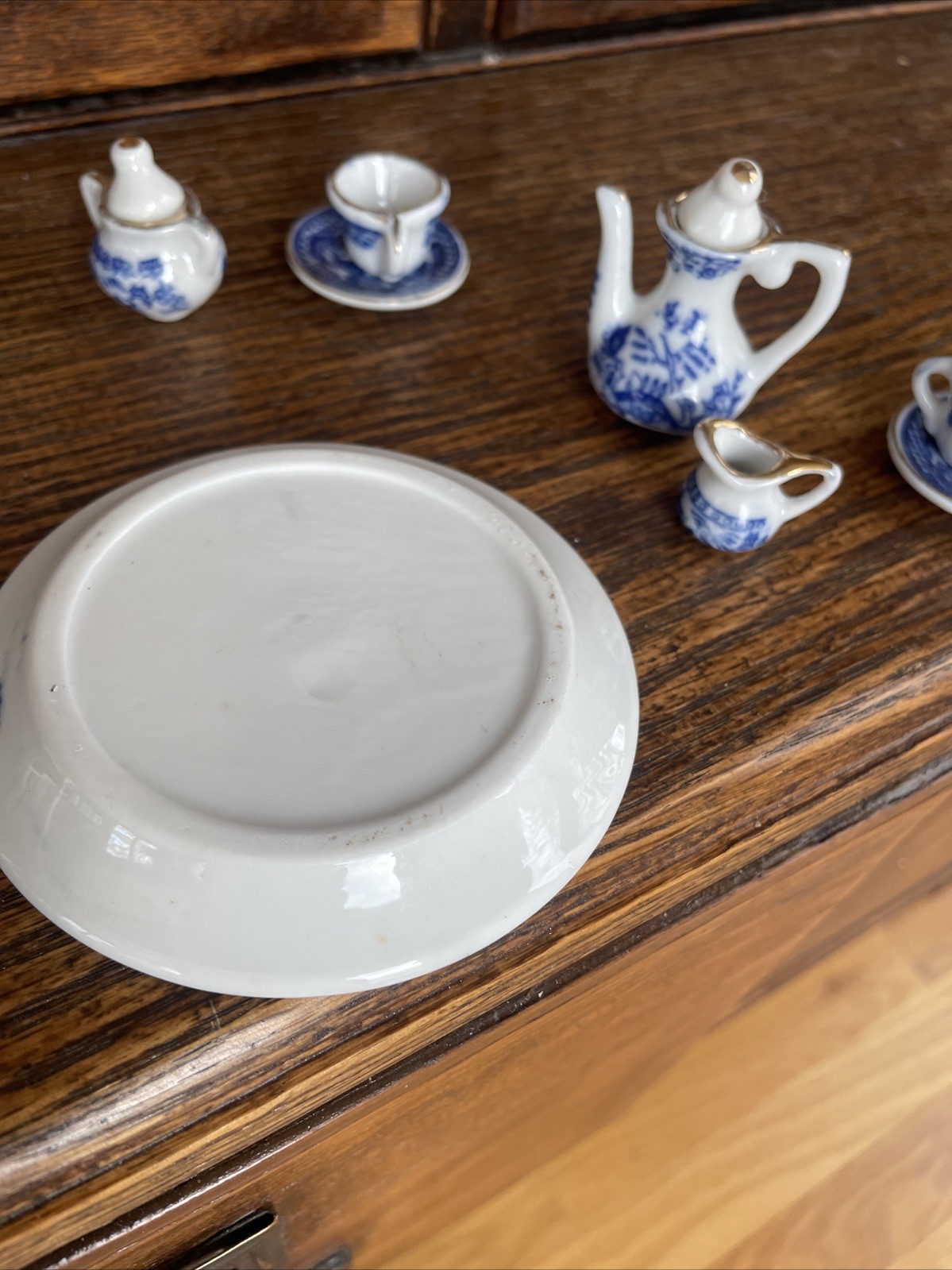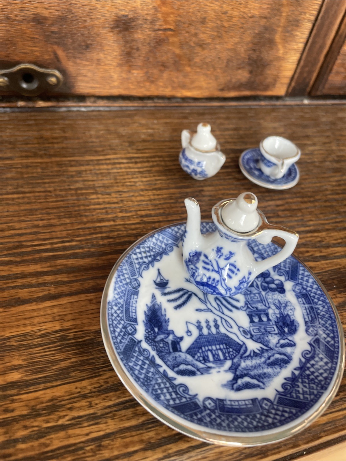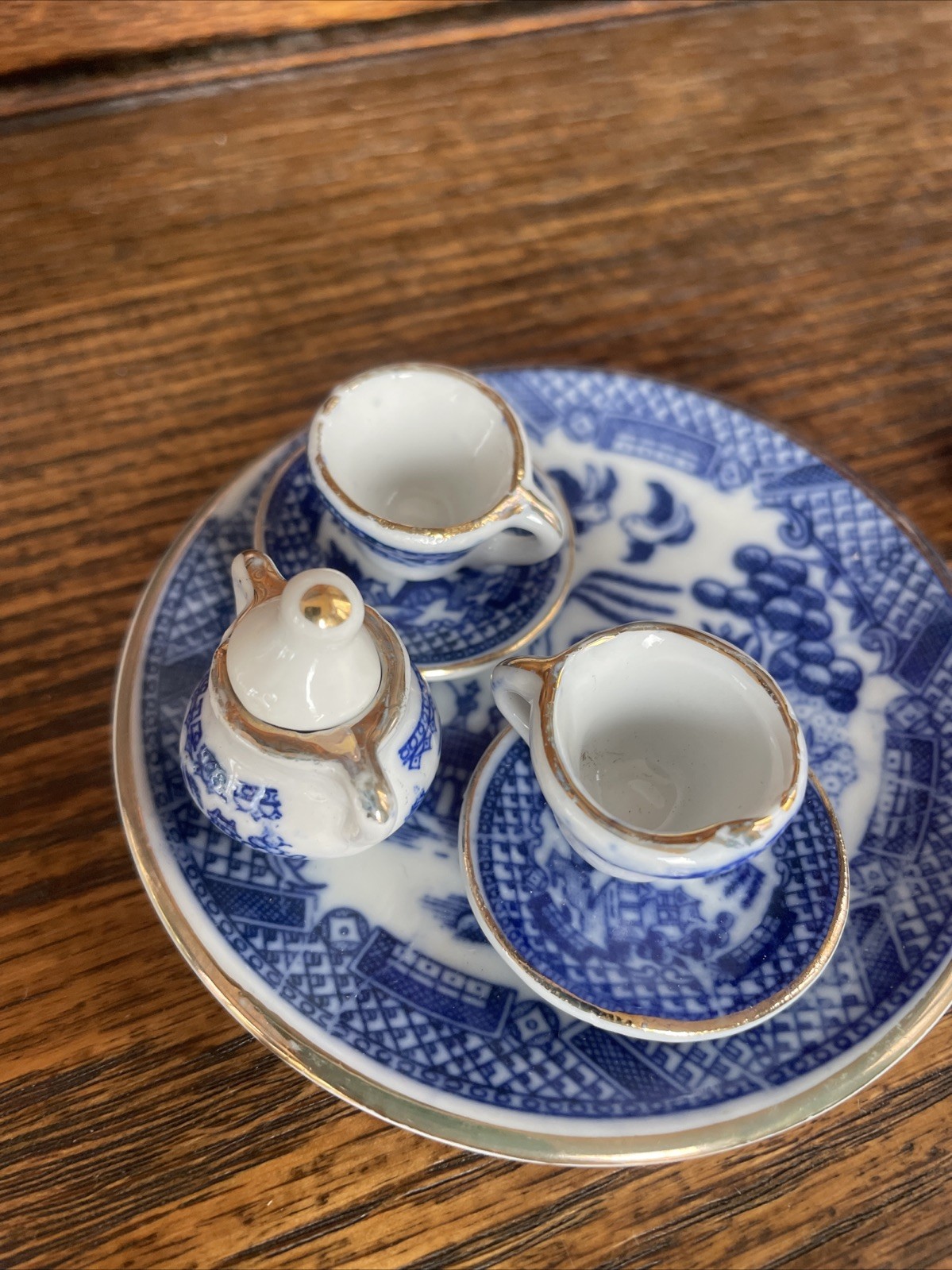 как выглядит Lot of 10 Miniature Blue Willow Tea Set Pieces Cup Saucer Teapot w/Lids фото