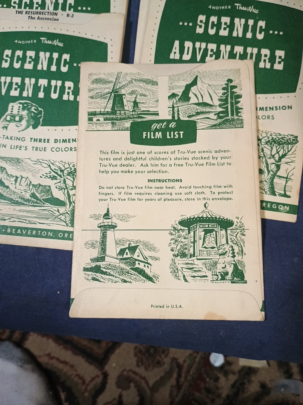 Vintage Tru-Vue Three Dimensional Film Viewers from 1950's with 9 Film Cards