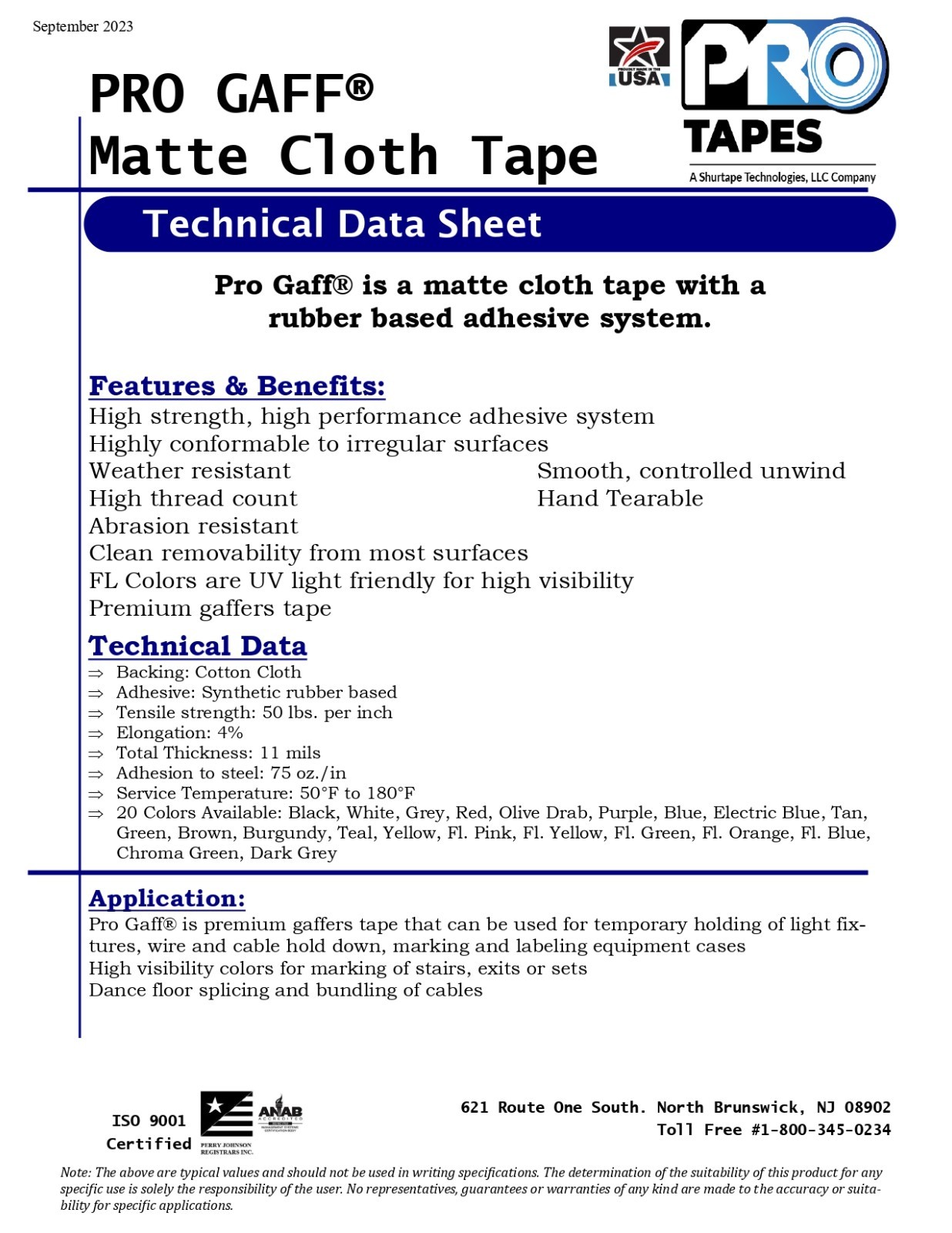 Pro Tapes Pro Gaff Gaffer Tape Black 2 x 55 yds.