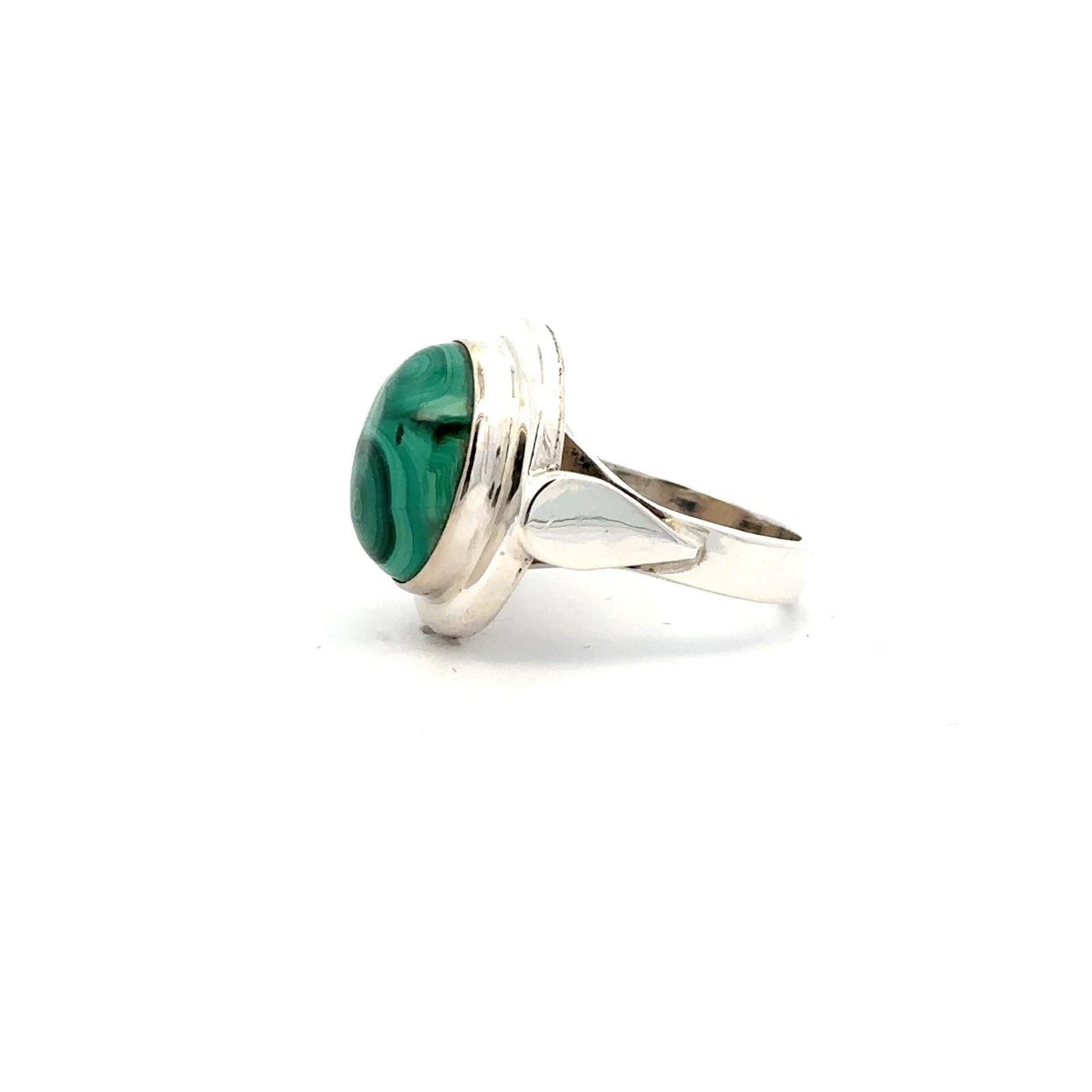 Sterling Silver Oval Malachite Ring Size 7 -Stone 1/2 x 5/8 Inch
