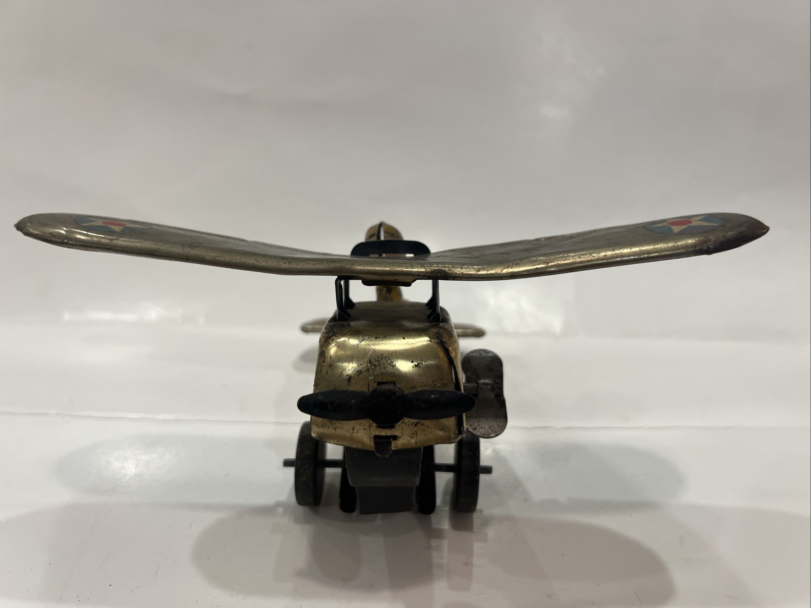 как выглядит Vintage 1940s Marx USAF Air Force Tin Litho Windup Toy Airplane Rollover - Works фото
