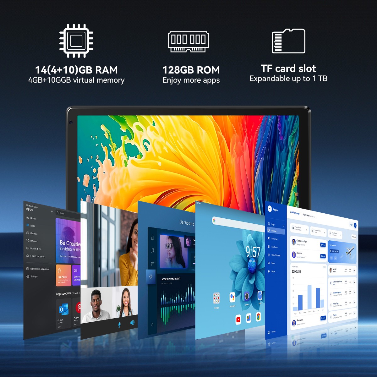 10.1 inch Android 15 Tablets Touchscreen Octa-Core 20GB RAM 128GB Dual Camera