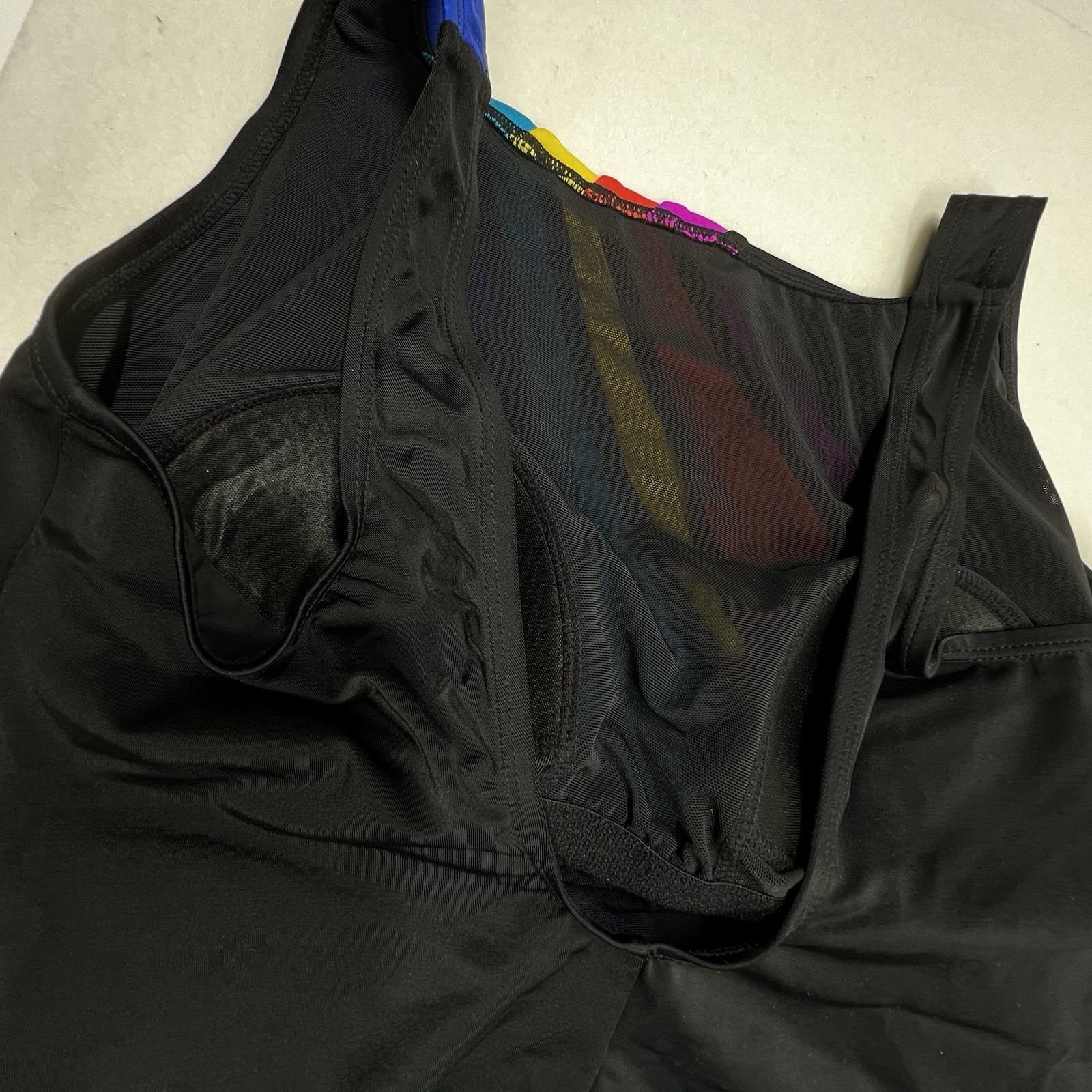 New Bathing Suit by Longitude Nylon Spandex Sz 10 Women's Black Rainbow Stripes
