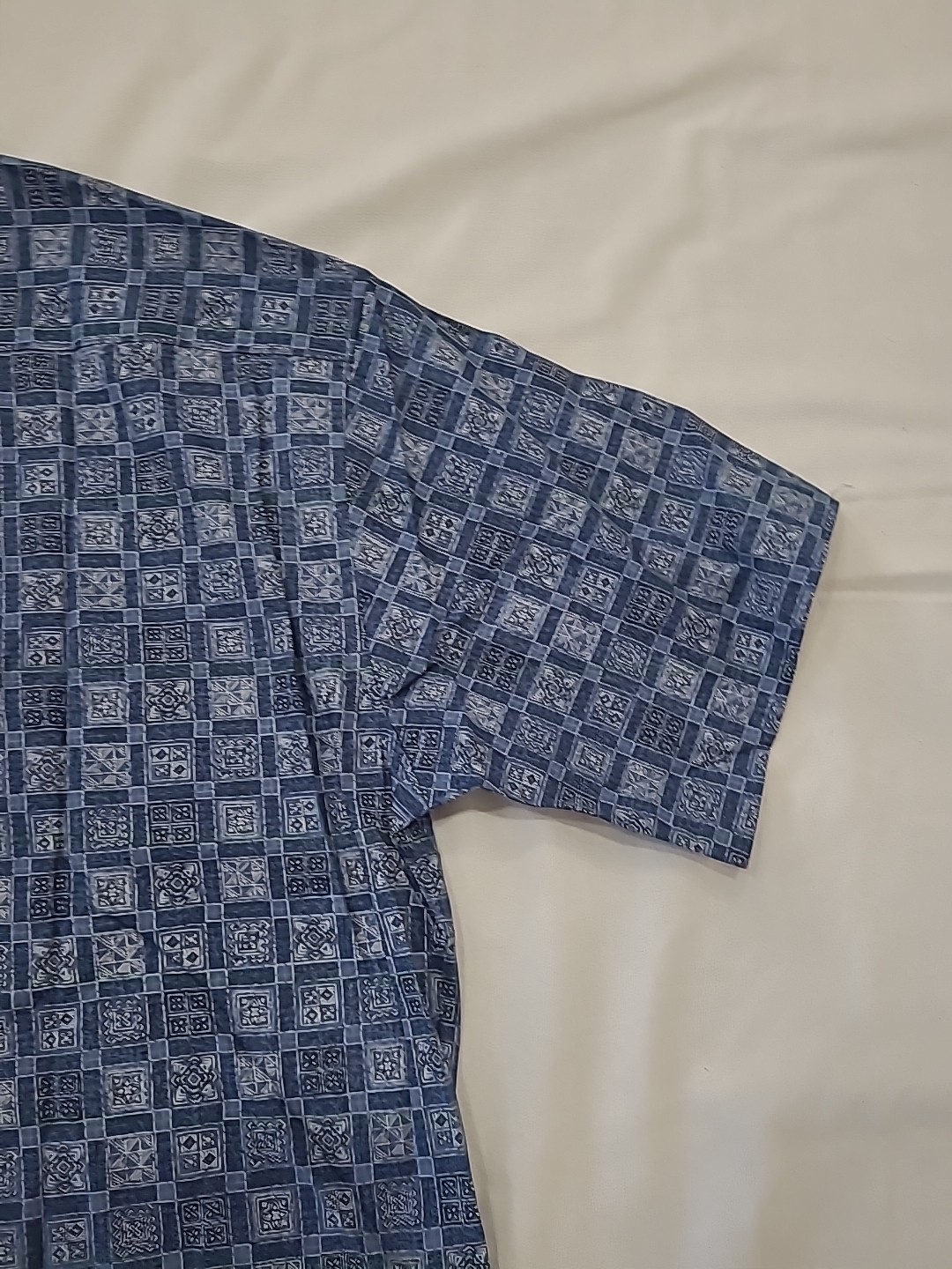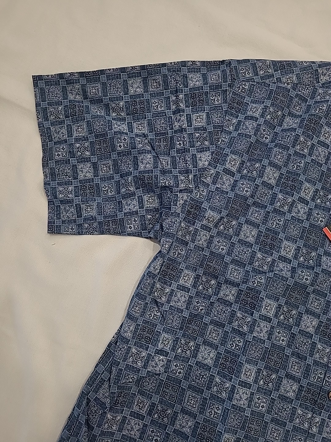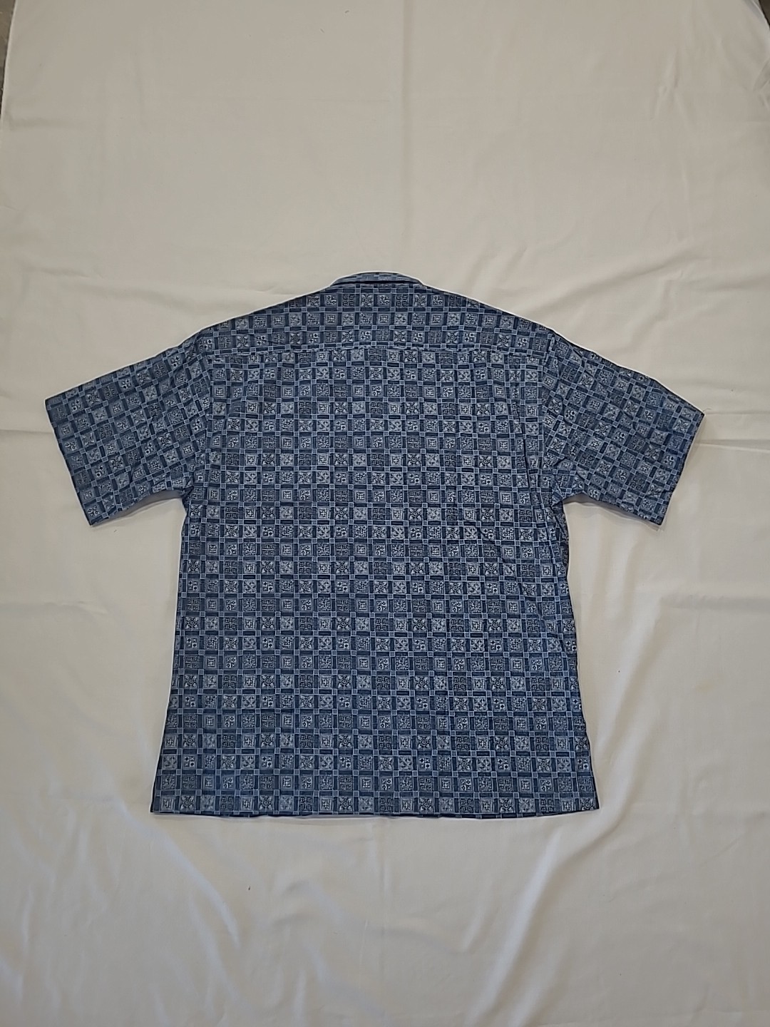 как выглядит Pierre Cardin Mens Short Sleeve Button Down Sz L Blue Print NWT фото