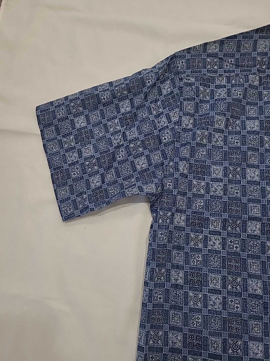 Pierre Cardin Men's Short Sleeve Button Down Sz L Blue Print NWT
