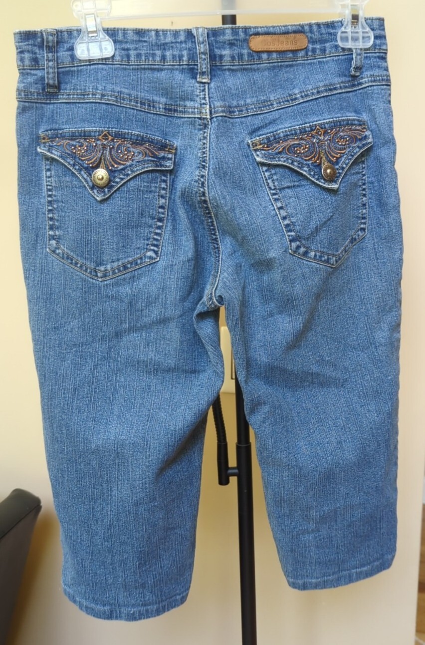 как выглядит Capri Jeans Cropped Stretch Denim Pants Sz 8 Embellished Buttoned Pockets фото