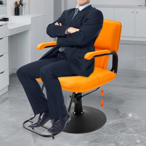 Salon Styling Chair, 360 Swivel Barber Chair, Adjustable Beauty Chair, Orange