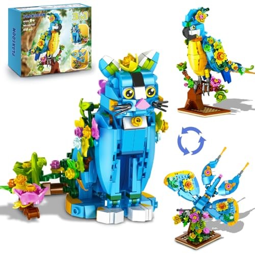 Flower Cat Building Set, 3 in 1 Floral Parrot Butterfly Animal Figure Building