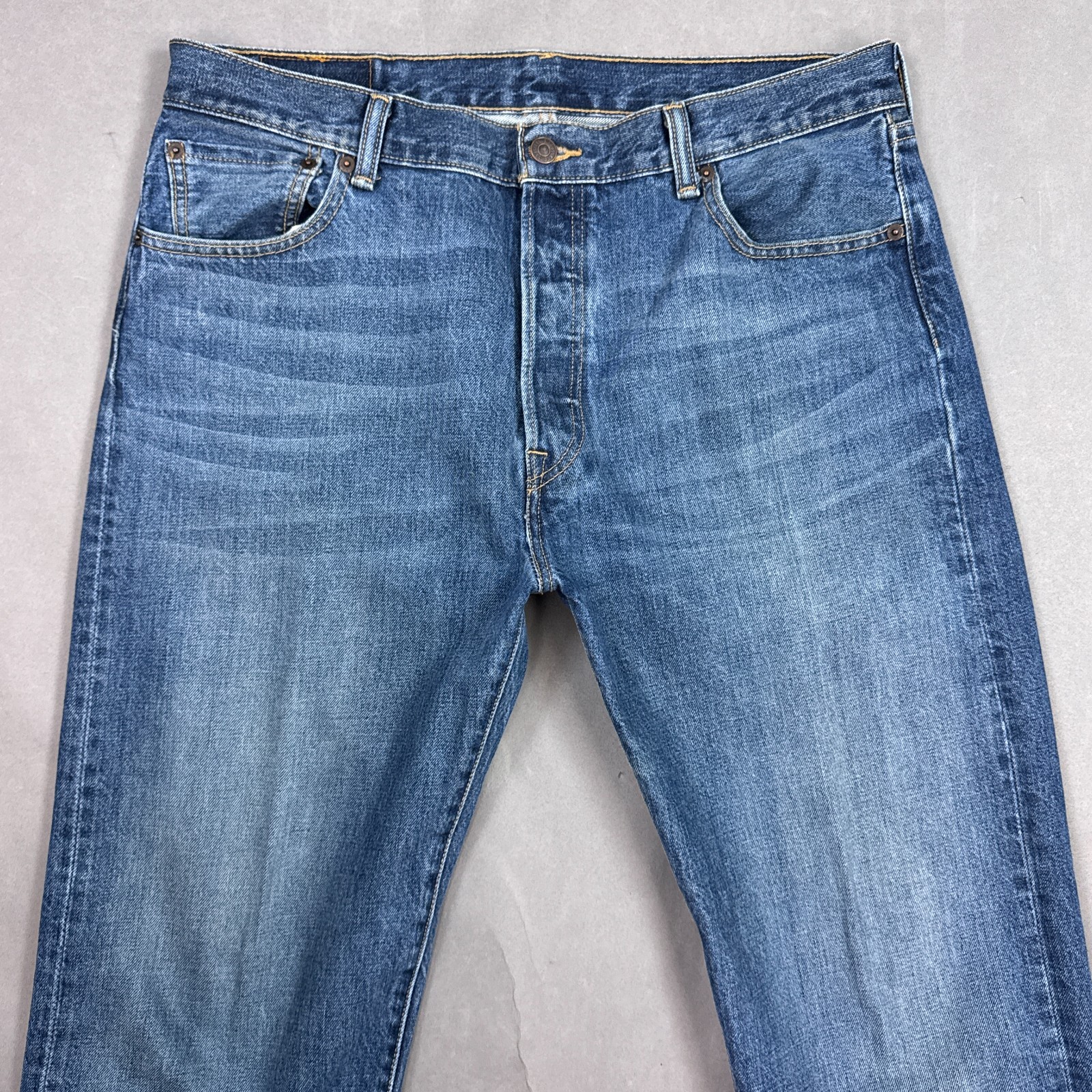 Levis 501 Jeans Mens 36x34 Blue Button Fly Denim Pants Faded Straight Work Chore