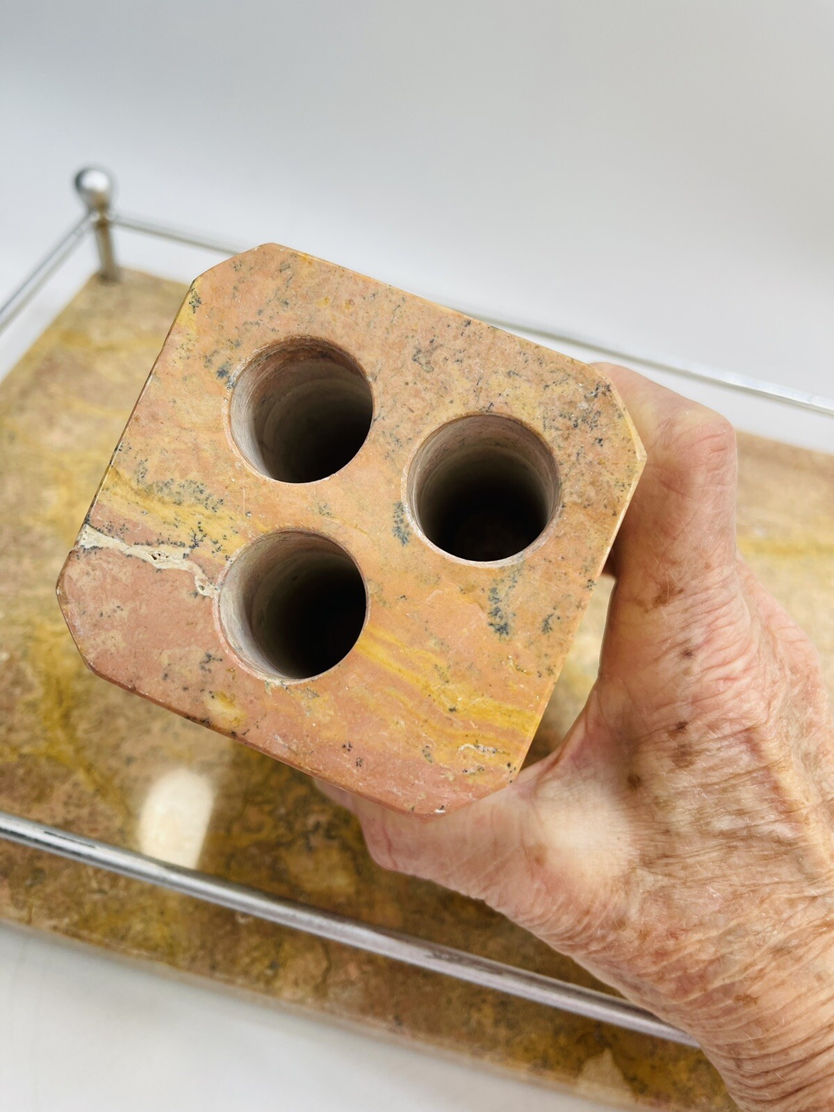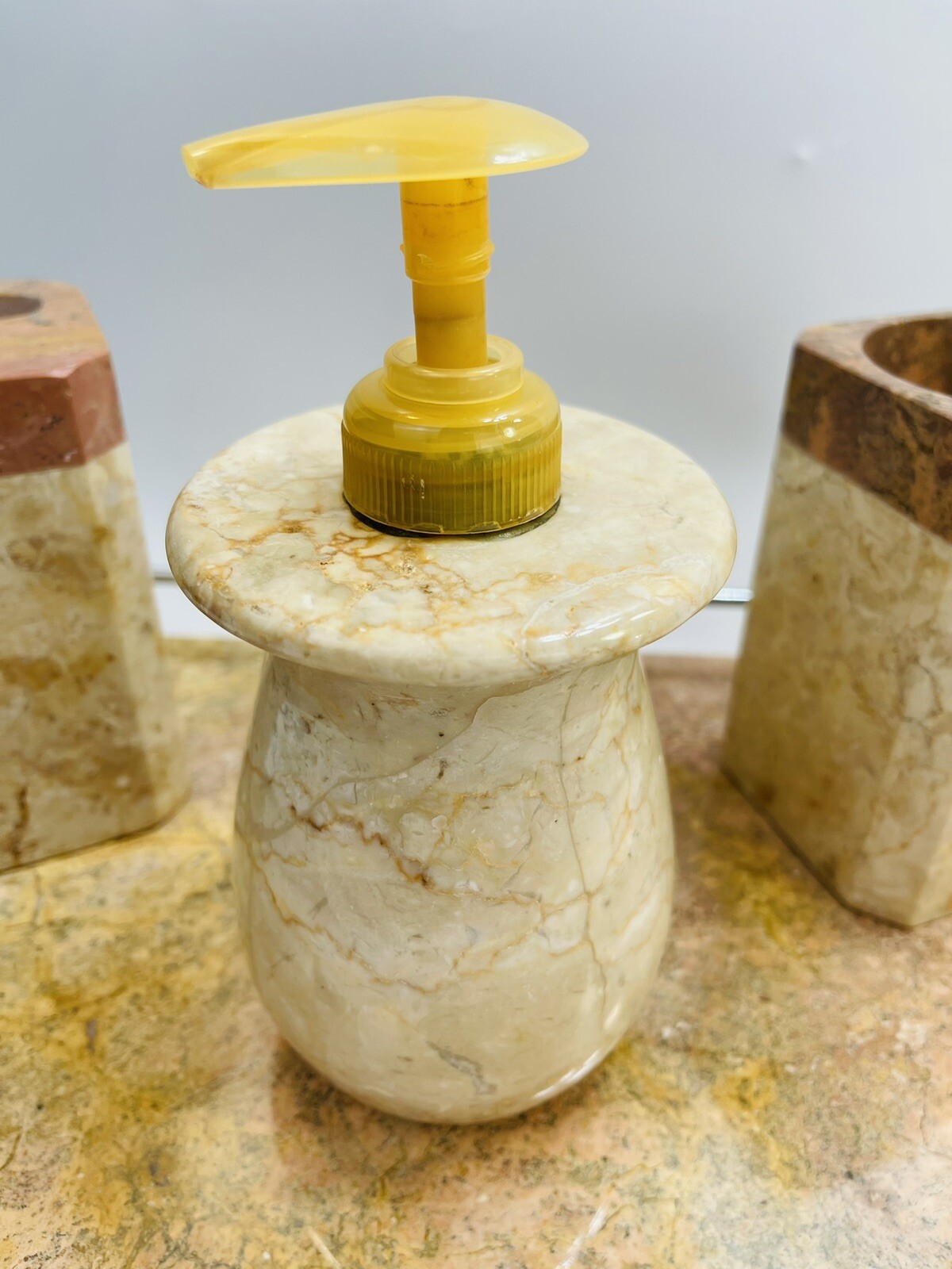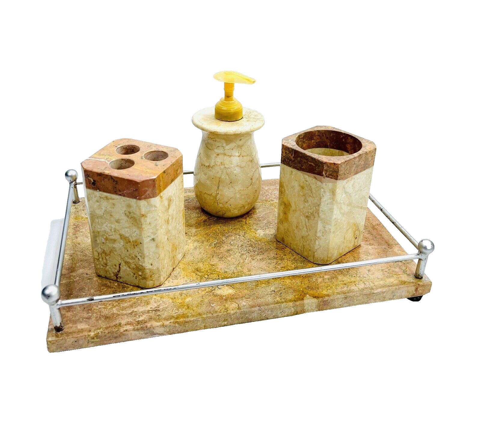 Solid Marble Bathroom Accessory SET MCM Tray Soap Disp Toothbrush Cup VTG 4 Pc.