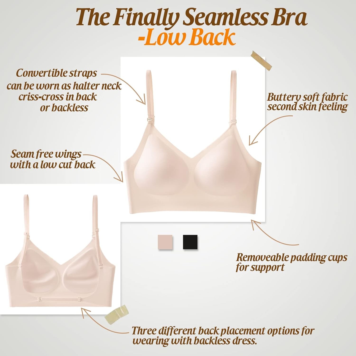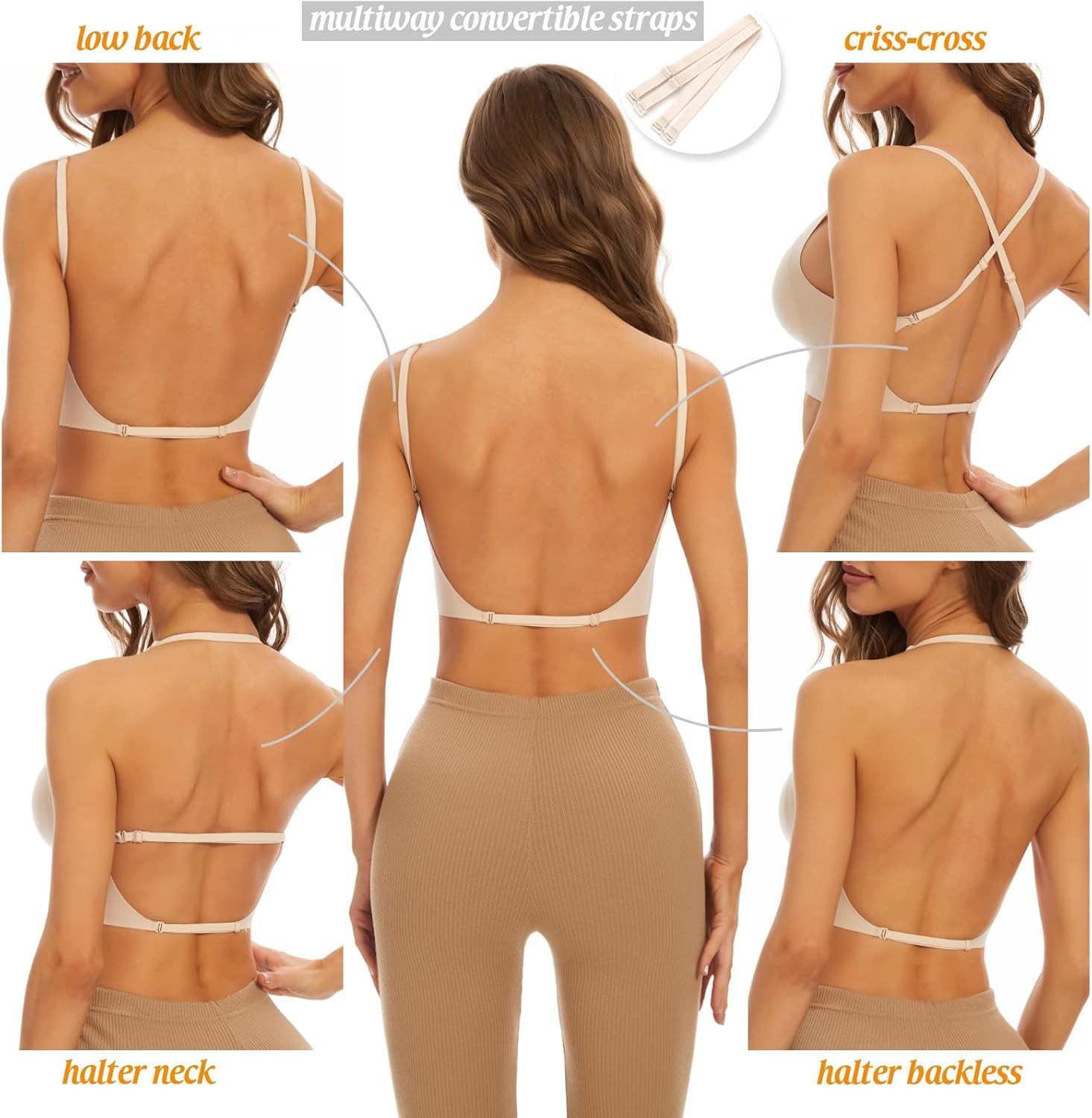 как выглядит Low Back Bra for Women Wirefree Seamless Bra Backless Multiway Straps Lg фото