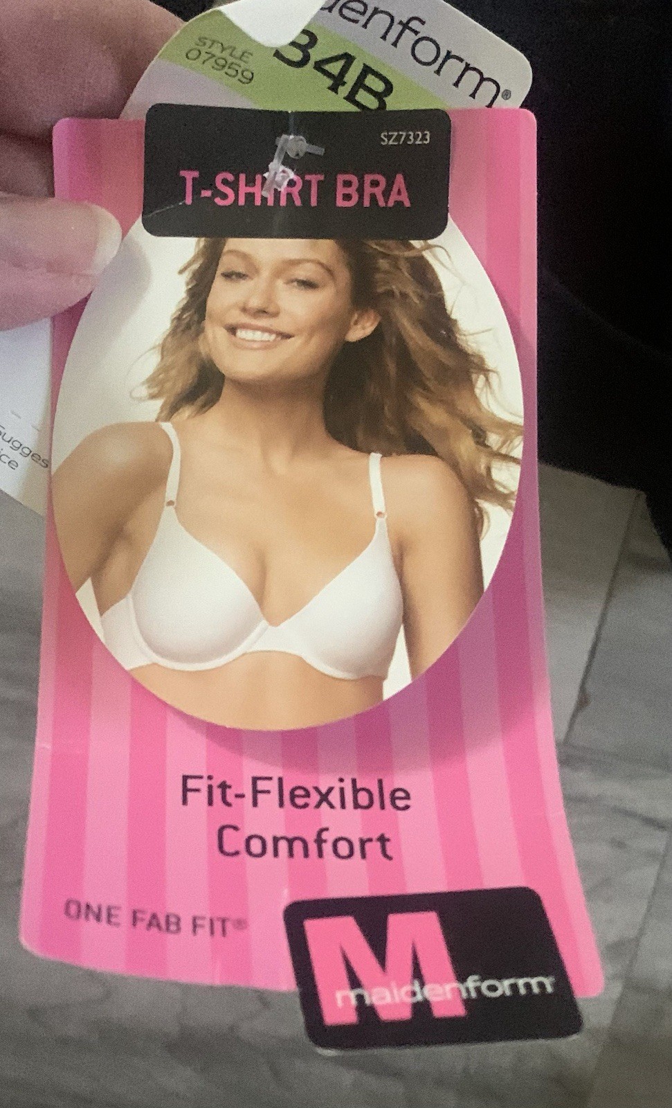 Maidenform Padded Underwire T Shirt Bra Fit Flexible Comfort Black Sz 34b