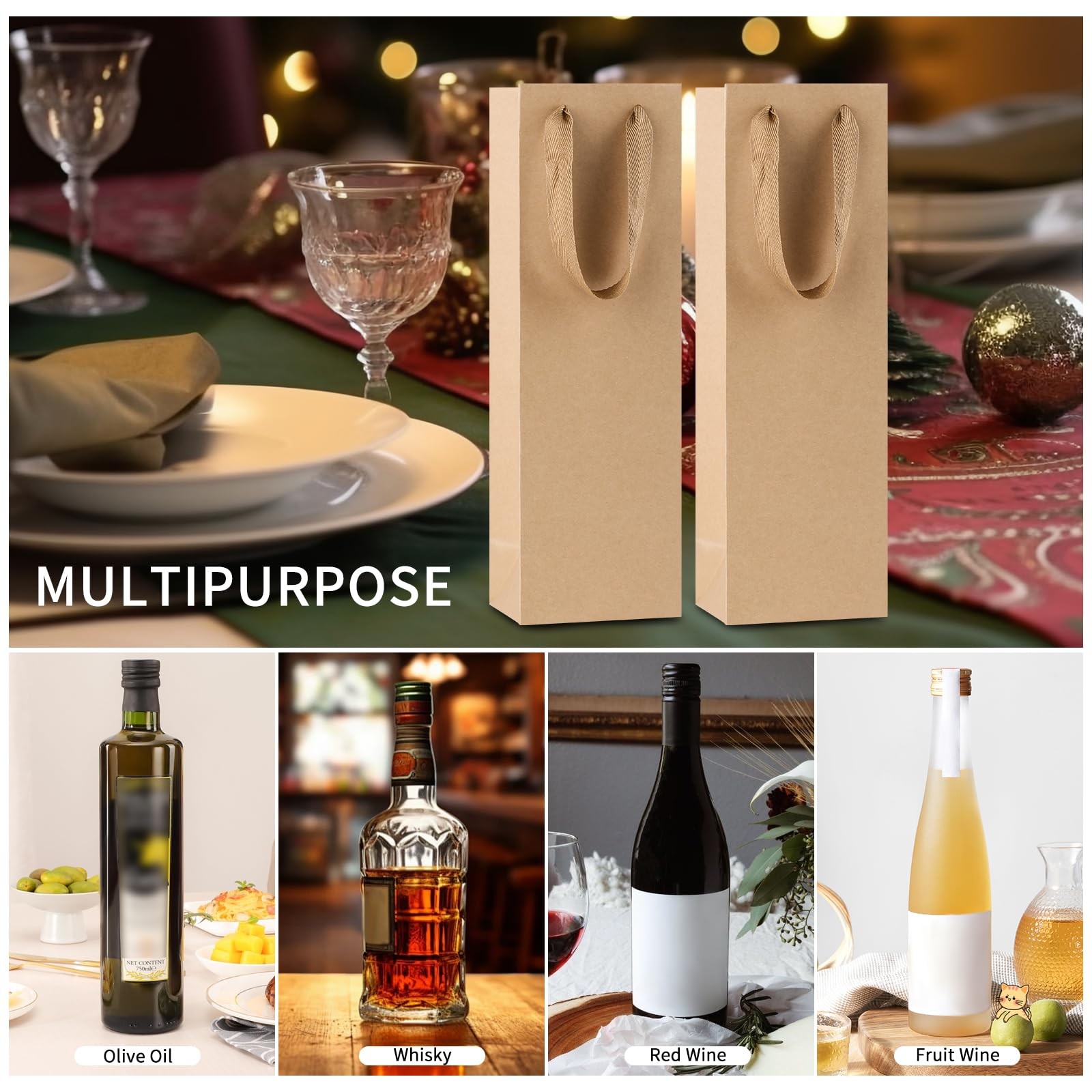 20Pcs Brown Wine Gift Bags Bulk, Kraft Paper Wine Tote Bags with Handles for ...