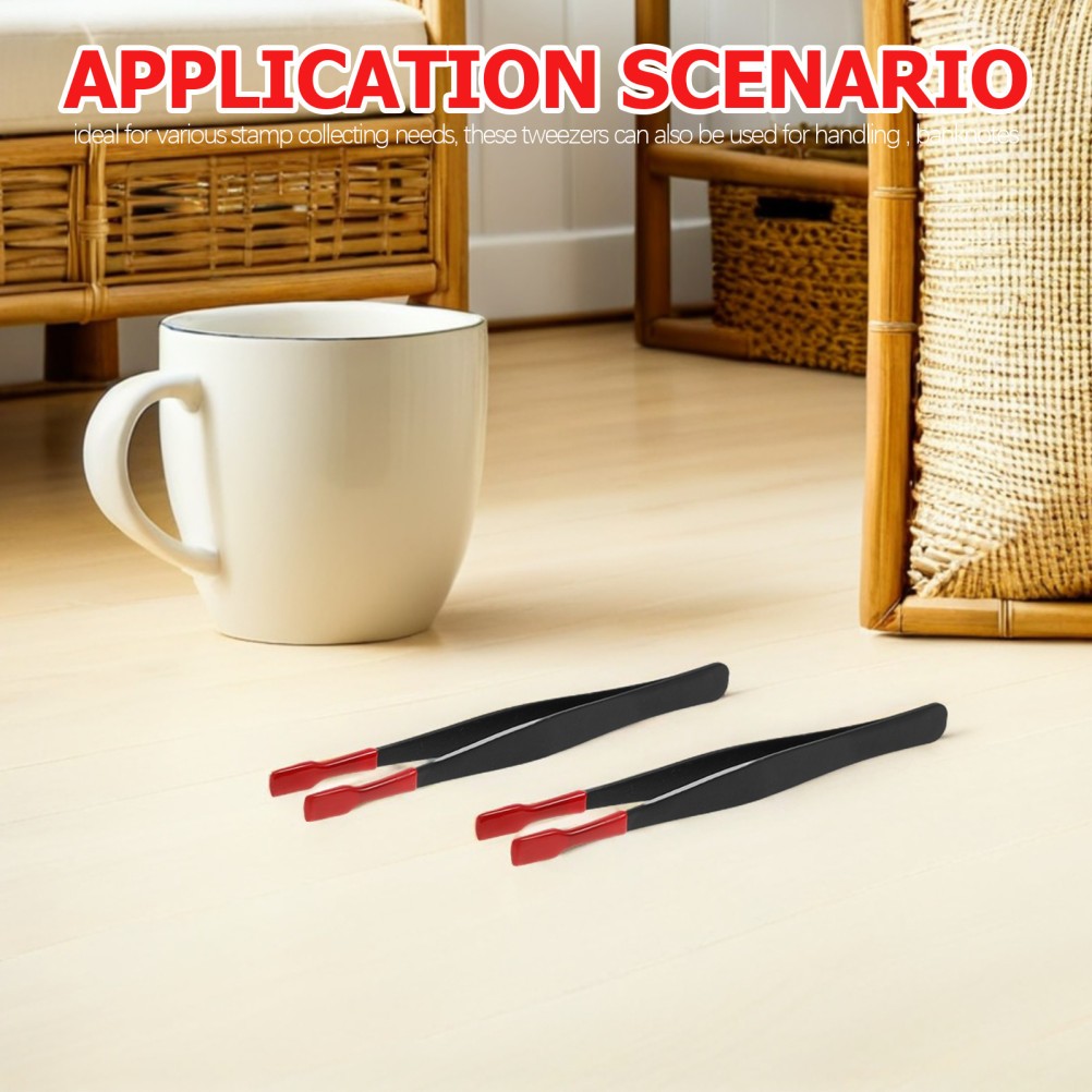4 Pcs Tweezers for Stickers Flat Stamp Collecting Metal Crafting