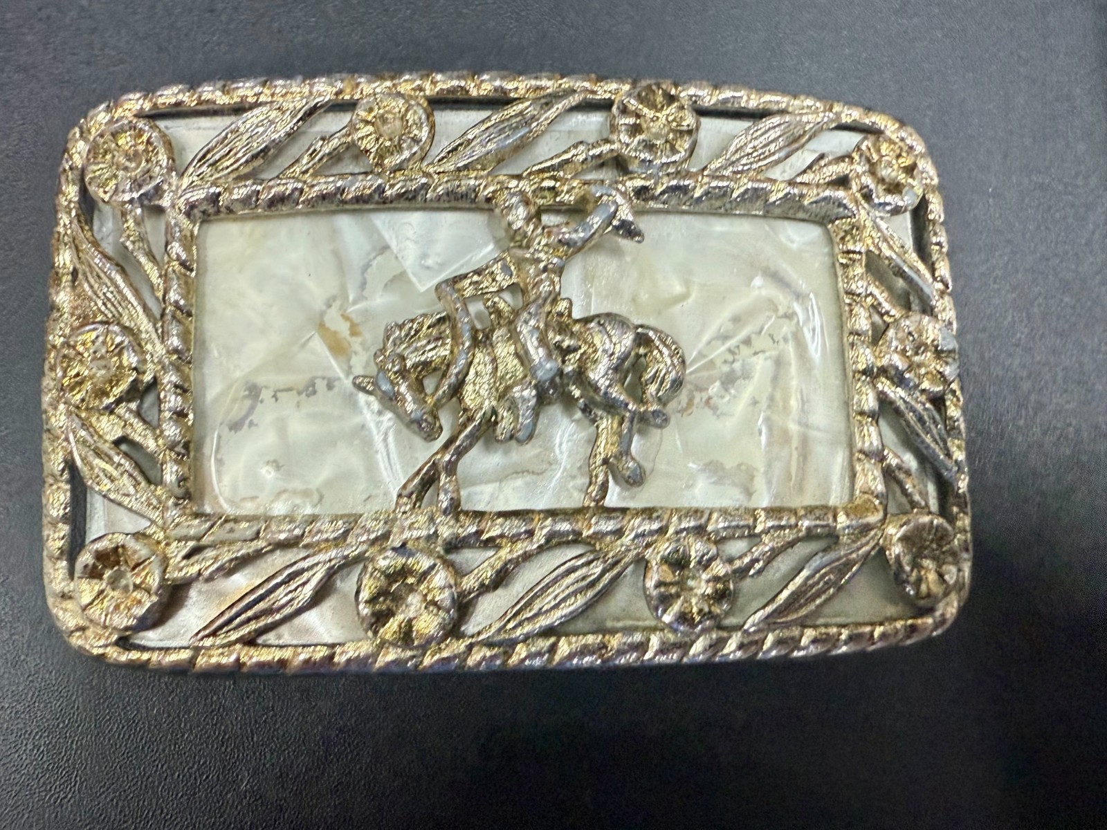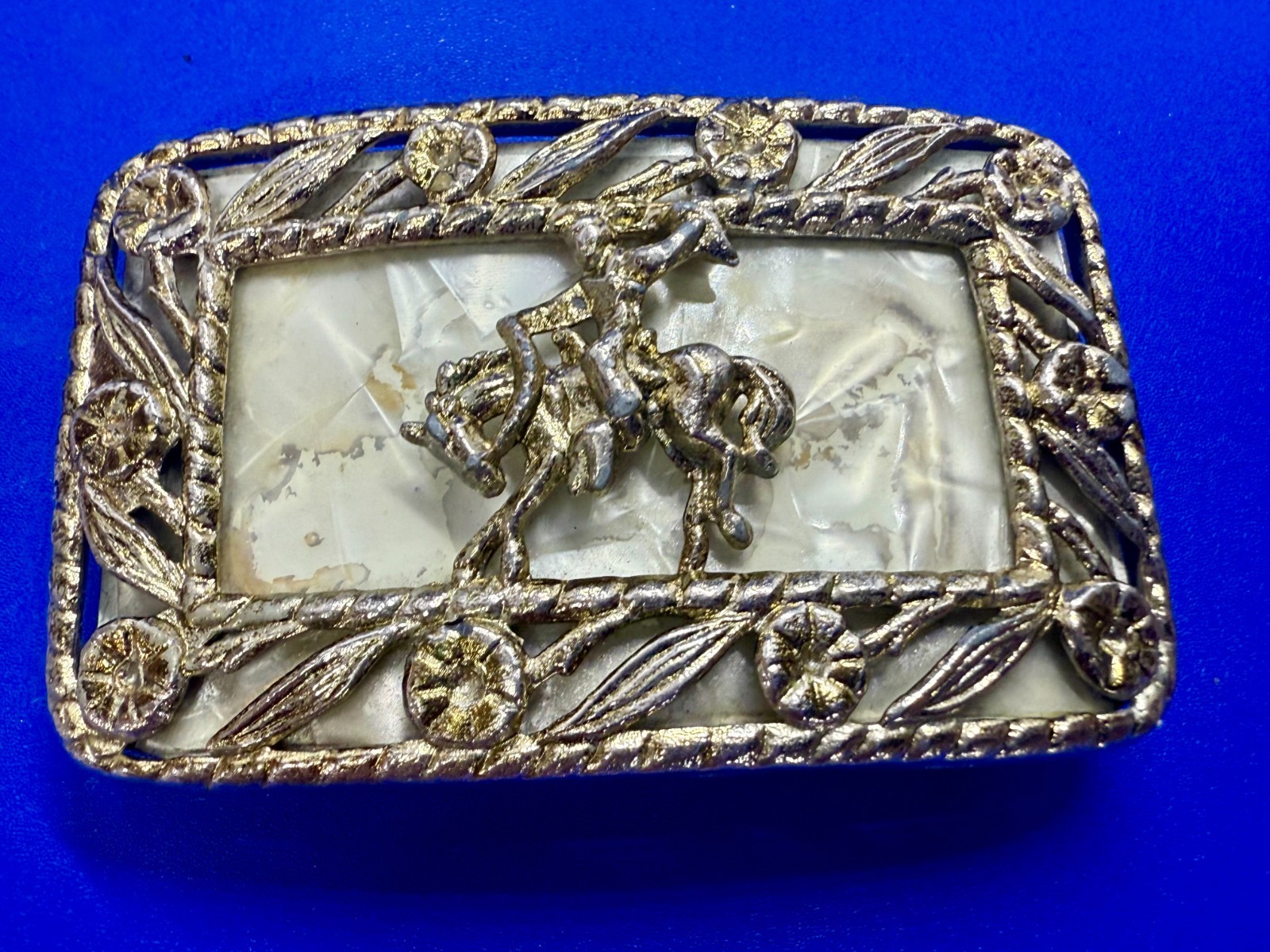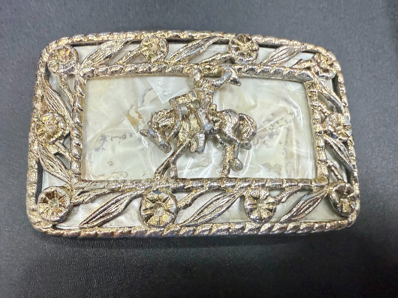 как выглядит Bucking Bronco Horse Rider Raised on Background Western Rodeo Cowboy Belt Buckle фото