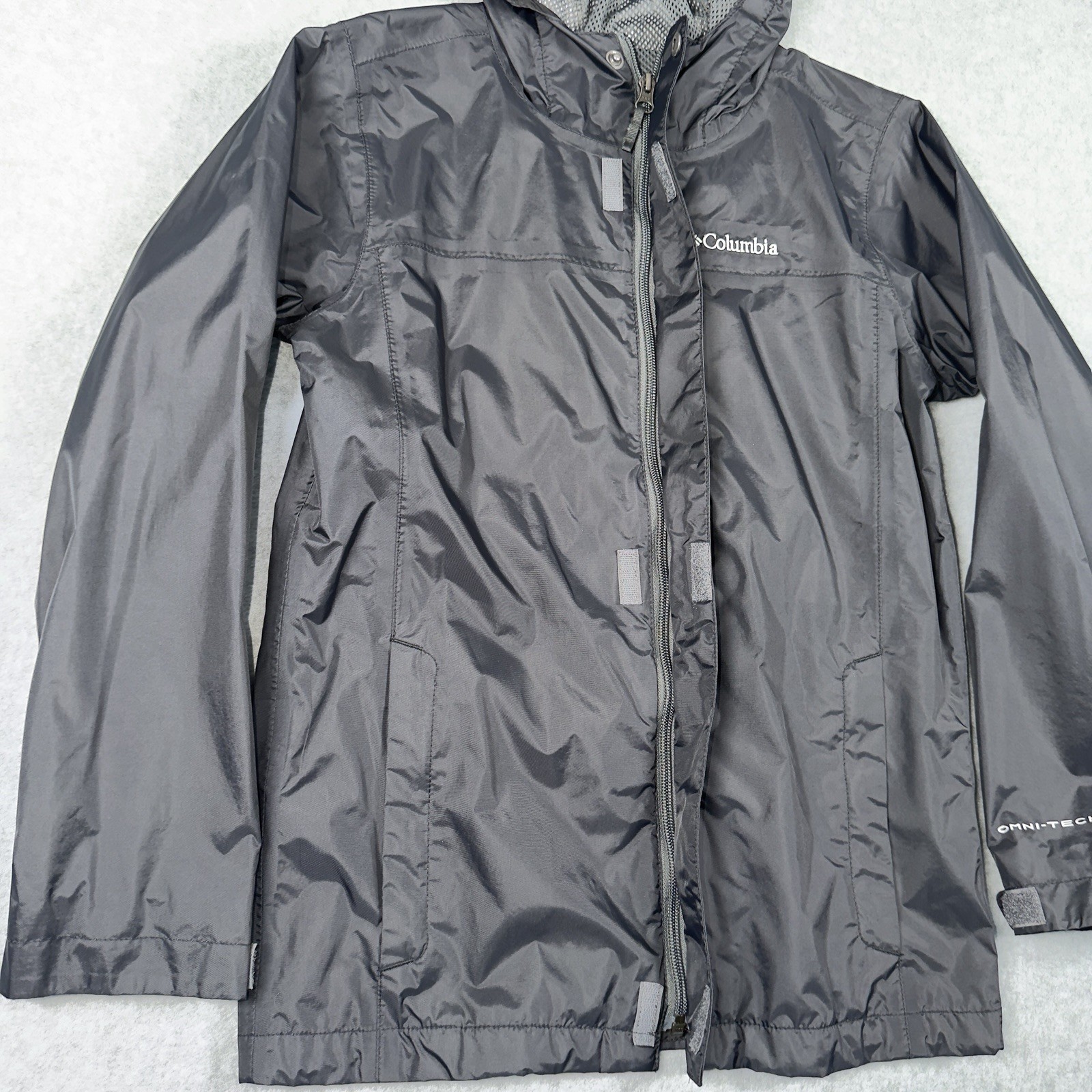 как выглядит Columbia Jacket Youth MEDIUM Black Hooded Windbreaker Rain Full Zip Lightweight фото