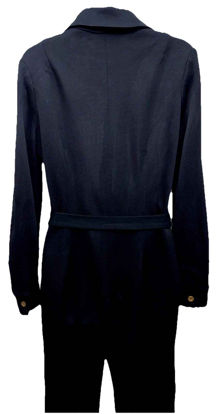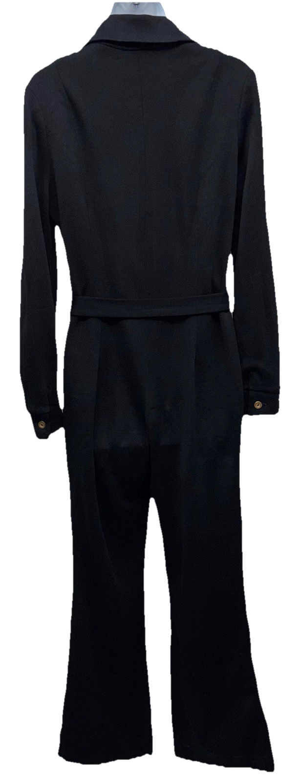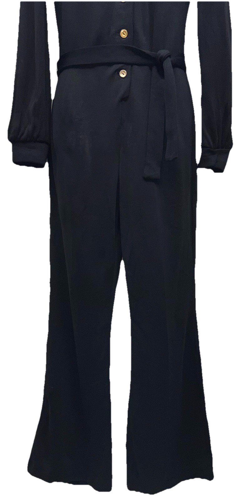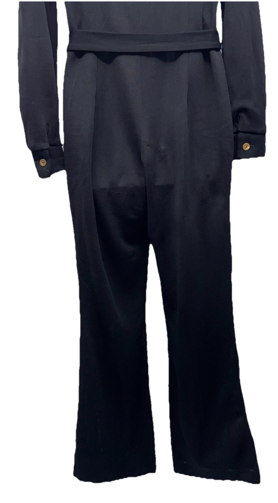 как выглядит VTG Women Size 13 Button Up Long Sleeve Flare Leg Utility Jumpsuit Belted Black фото