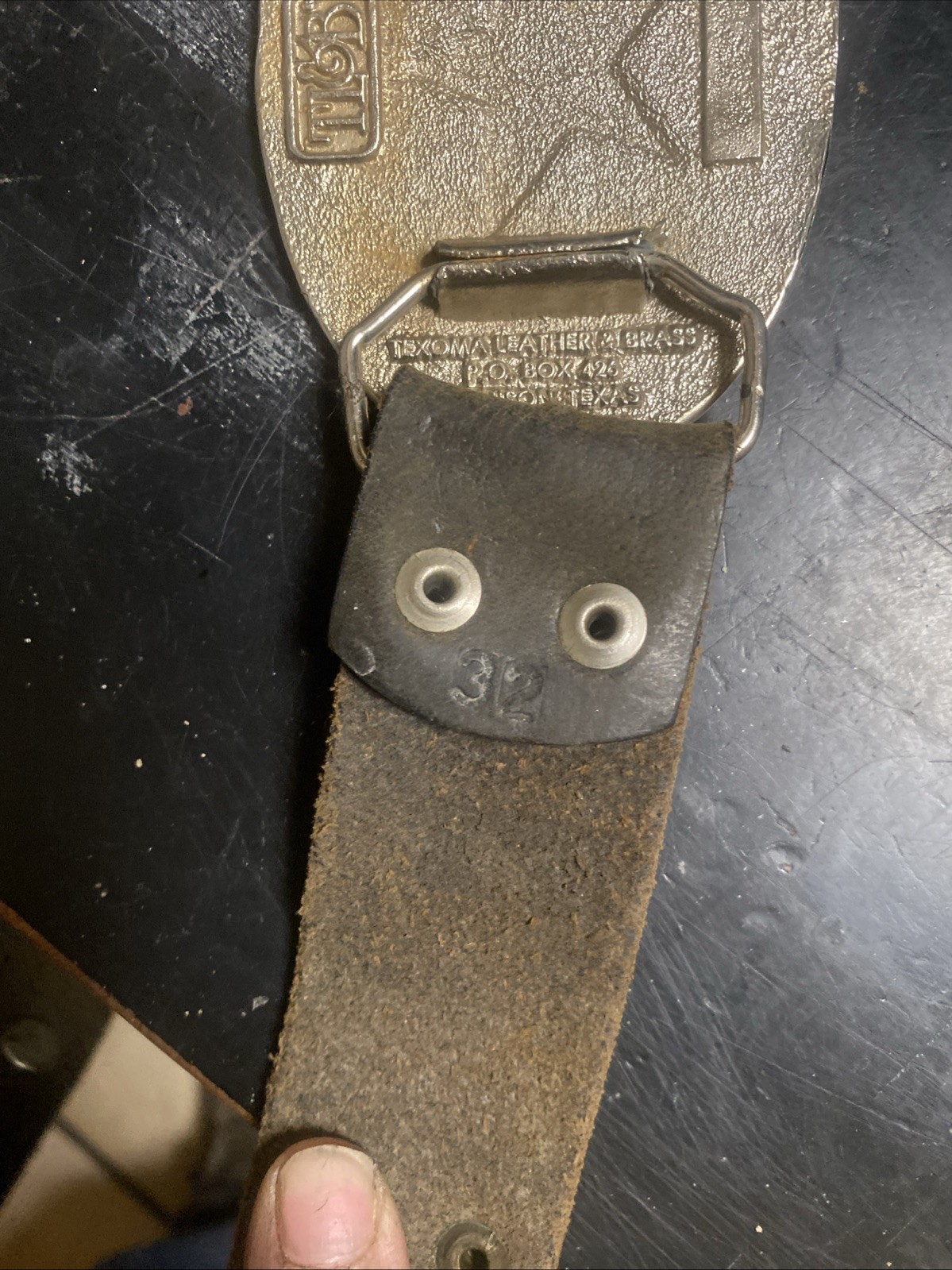State of Texas Silver Tone Belt Buckle with 32 inch Long Genuine Leather Belt