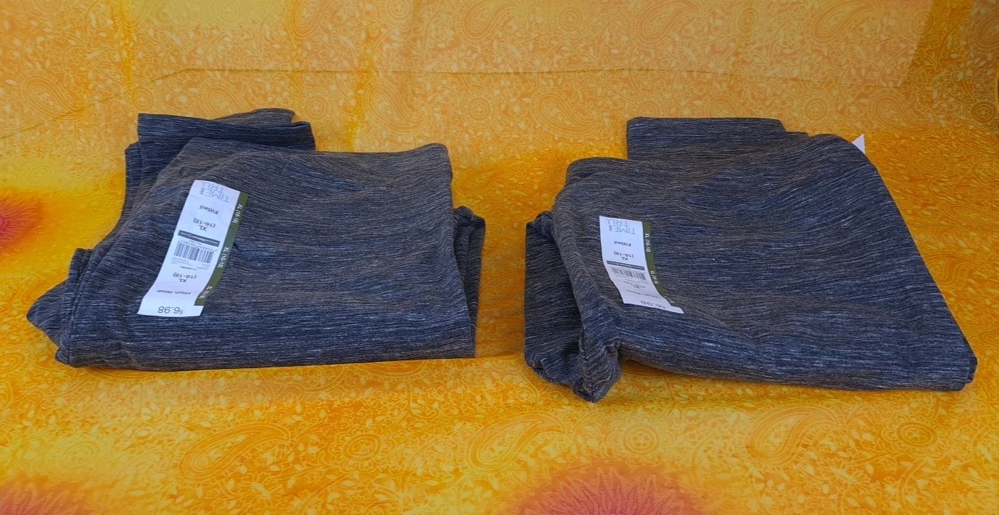 как выглядит Set Of 2 Time and Tru Grey Heathered High Rise Fitted Leggings XL 16 18 фото
