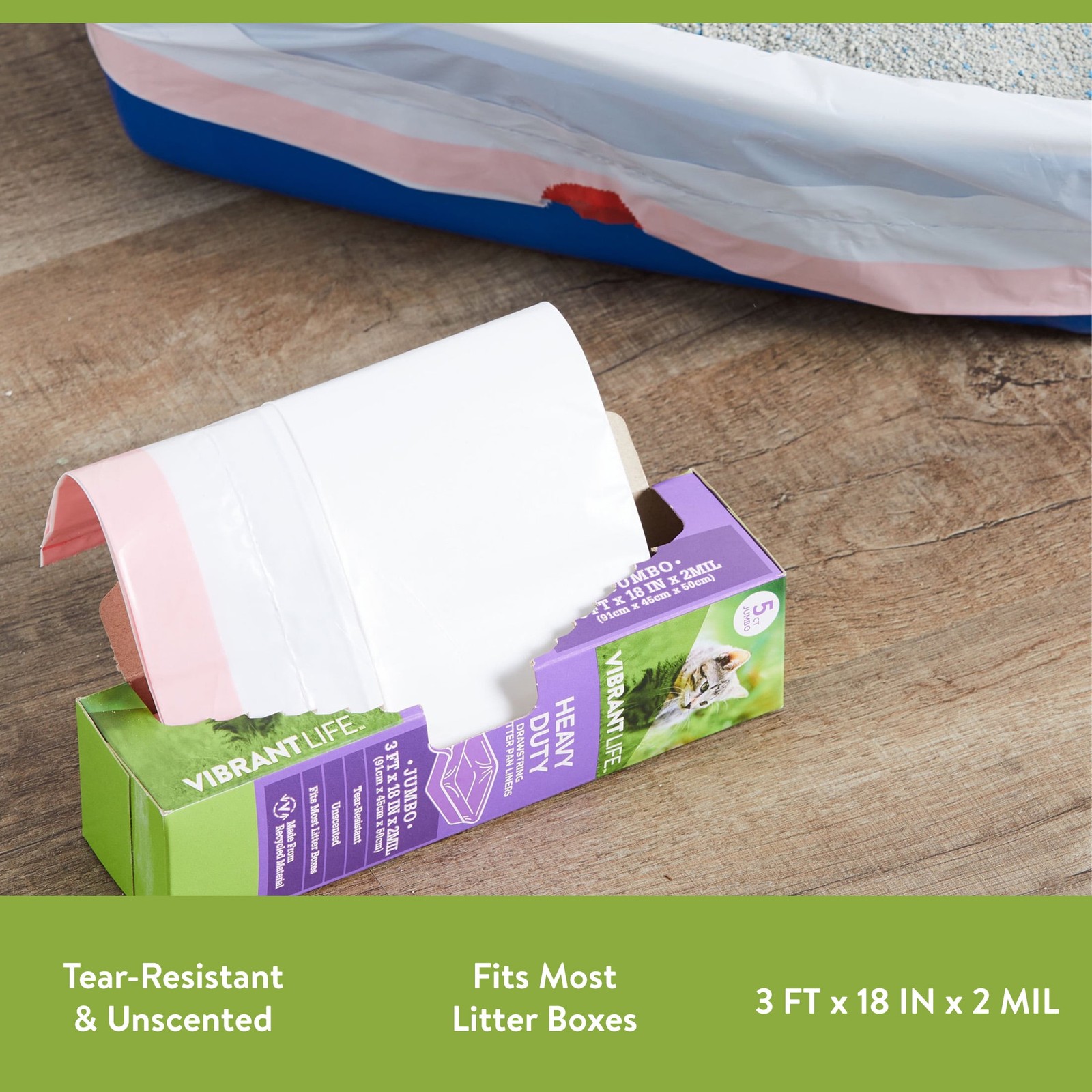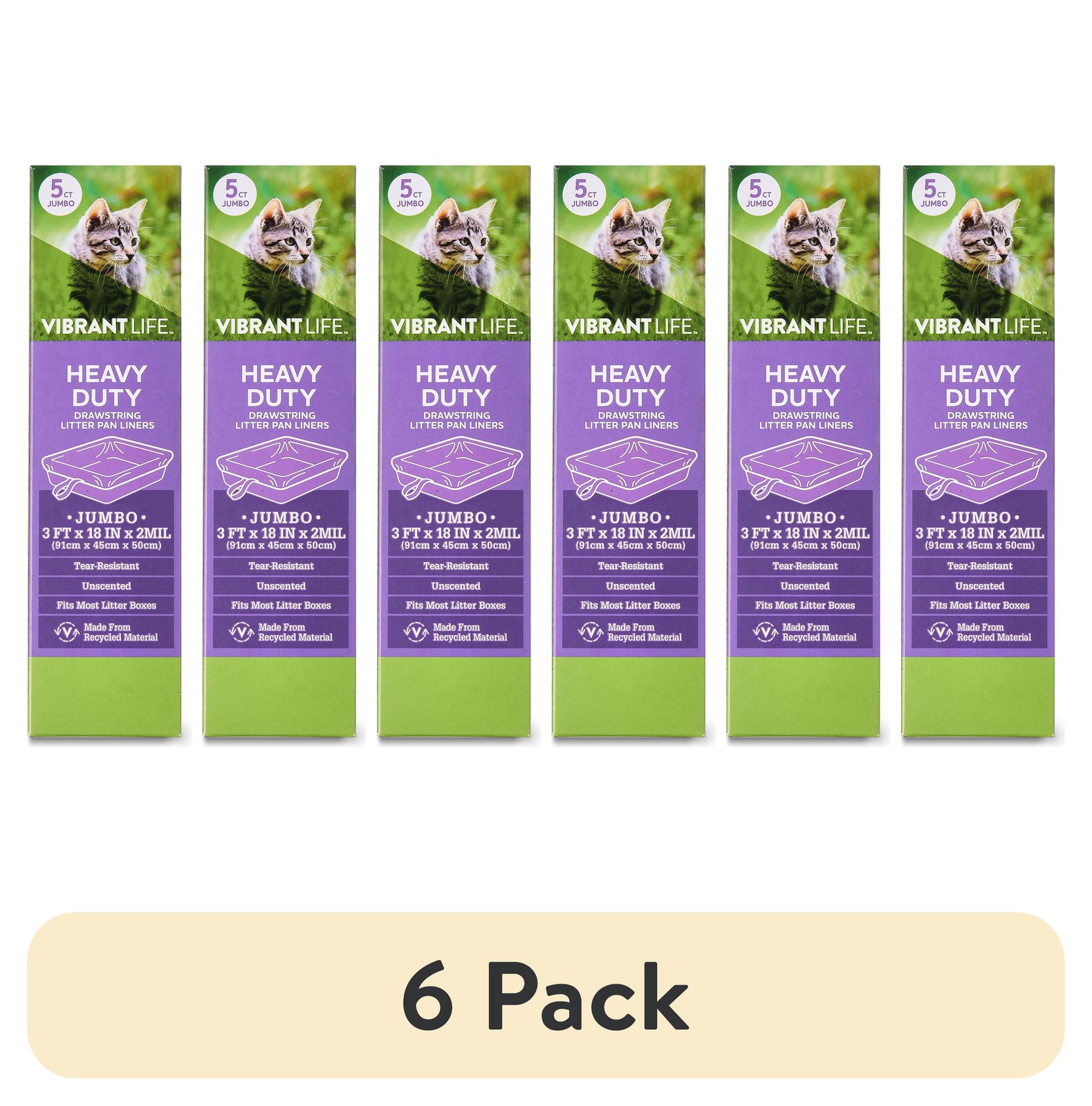 6 pack Vibrant Life Heavy Duty Jumbo Drawstring Litter Pan Liners, 5 Count