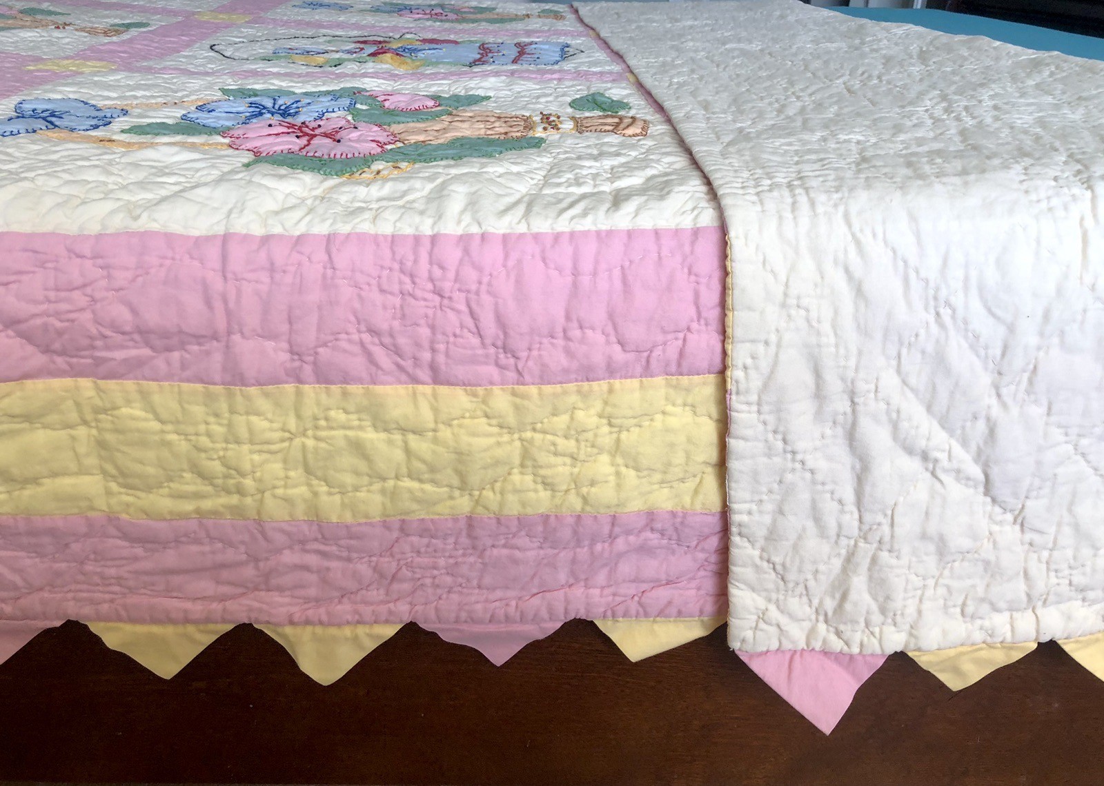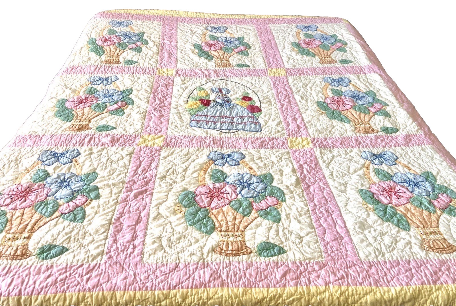 VTG Handmade Princess Embroidered Pink Multicolor Quilt 86 x83 Blanket