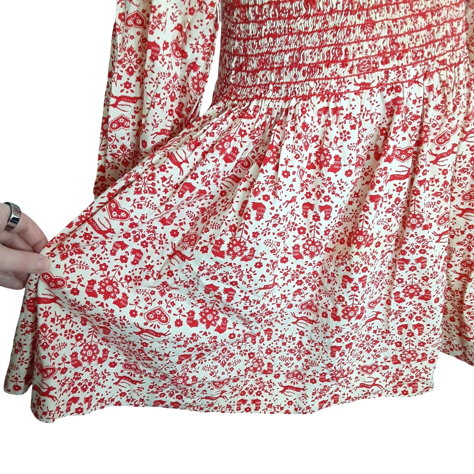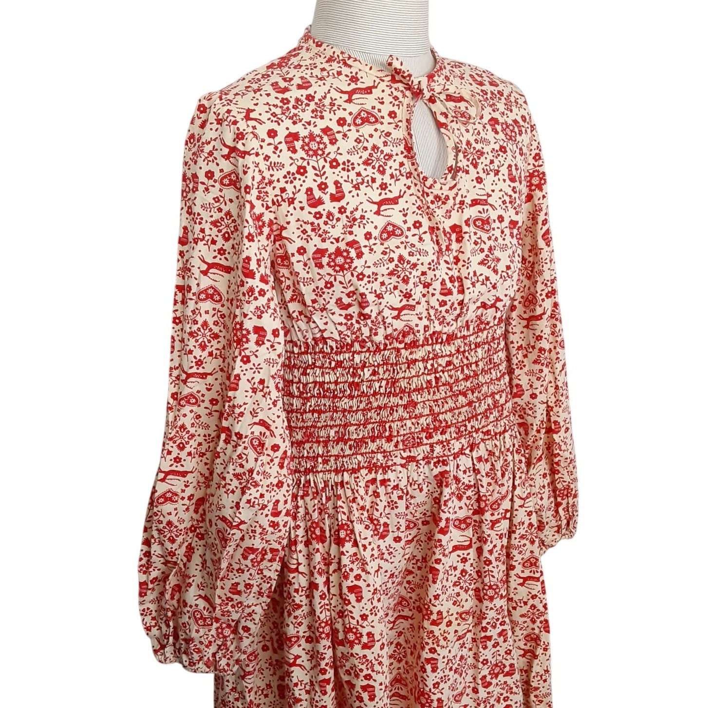 Vintage 60s Smocked Prairie Dress Girls 8 Cottagecore Woodland Romantic Holiday