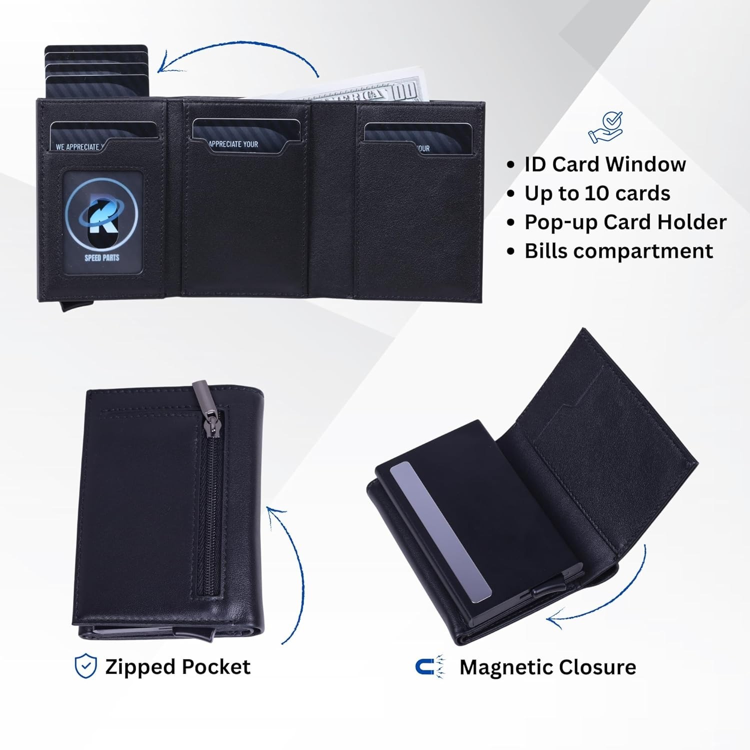 Pop Up Wallet for Men RFID Slim Leather Card Holder Minimalist Credit Wallet