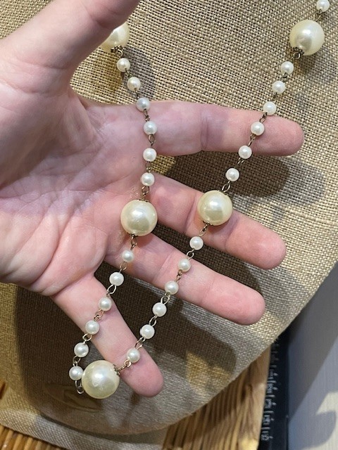 как выглядит VINTAGE ROSARY CHAIN LINKED SMALL PEARLS WITH LARGE PEARL ACCENTS NECKLACE фото