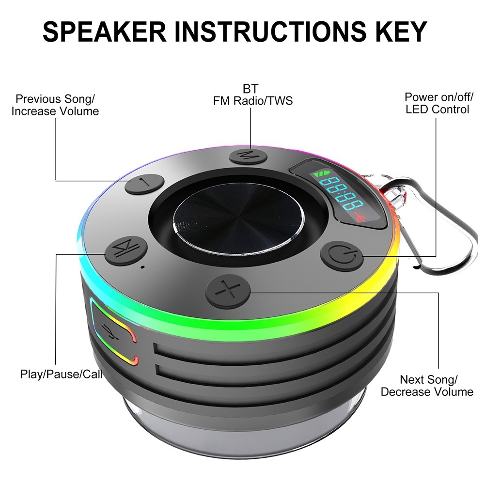 Shower Speaker Bluetooth-Compatible 5.3 Speaker FM Radio with Suction Cup8059