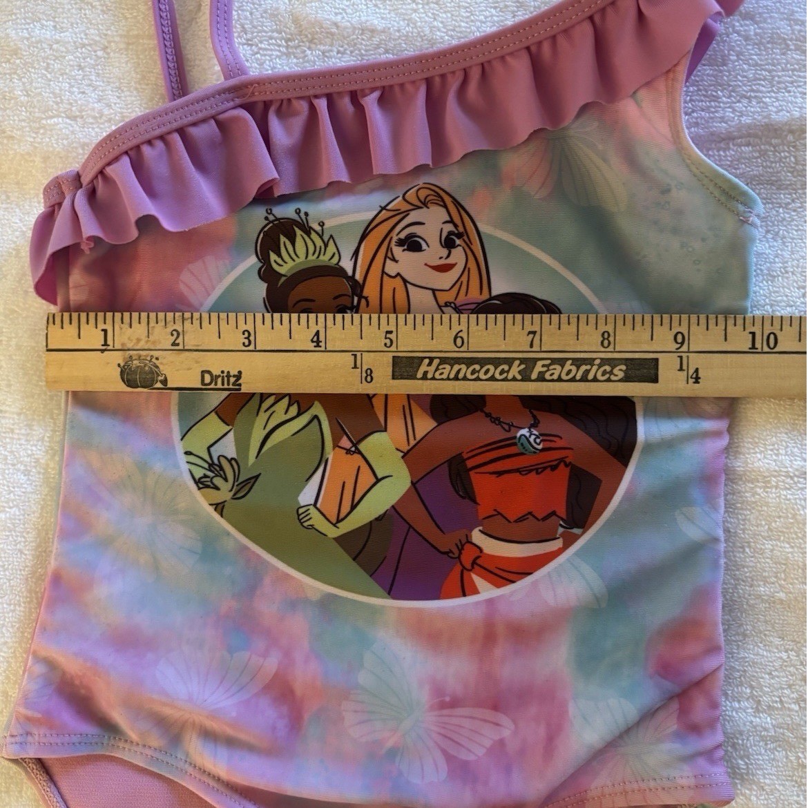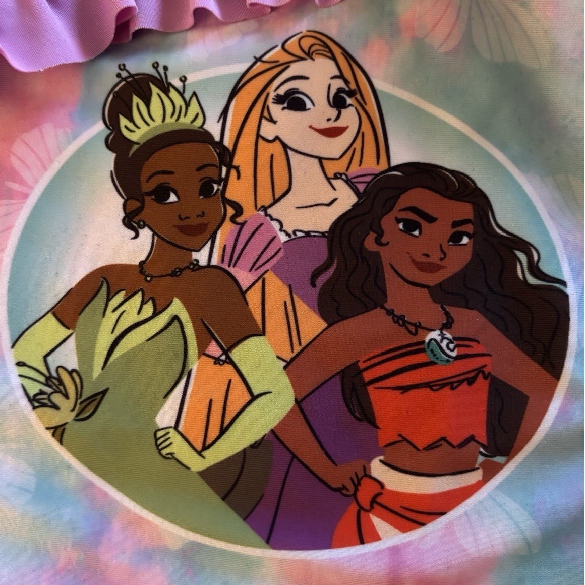 как выглядит Disney Princess Tiana Moana Rapunzel Girls One-Piece Swimsuit Size S 4 / 5 фото
