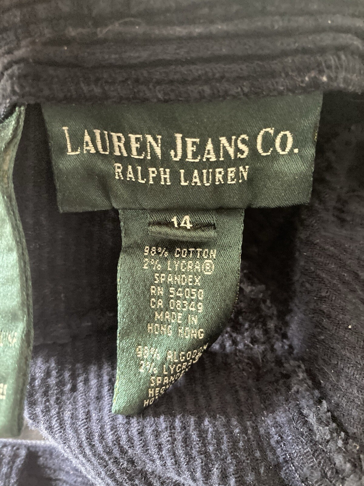 VTG. RALPH LAUREN JEANS CO. Corduroy Navy Blue Pants Size 14 Zip Button Logo
