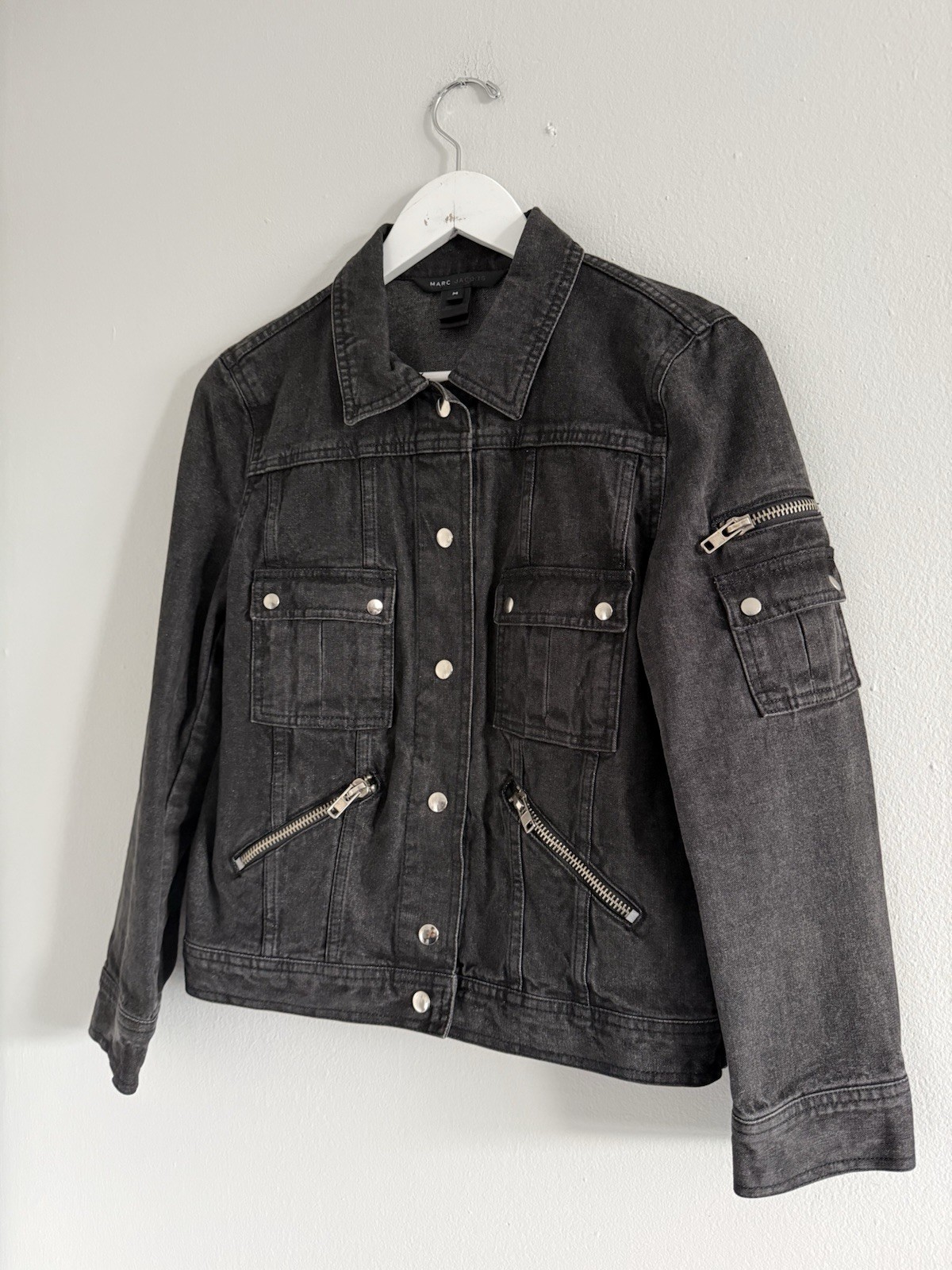как выглядит VTG 2000s Marc Jacobs Womens Black Denim Jacket Zipper Grunge Medium Designer фото