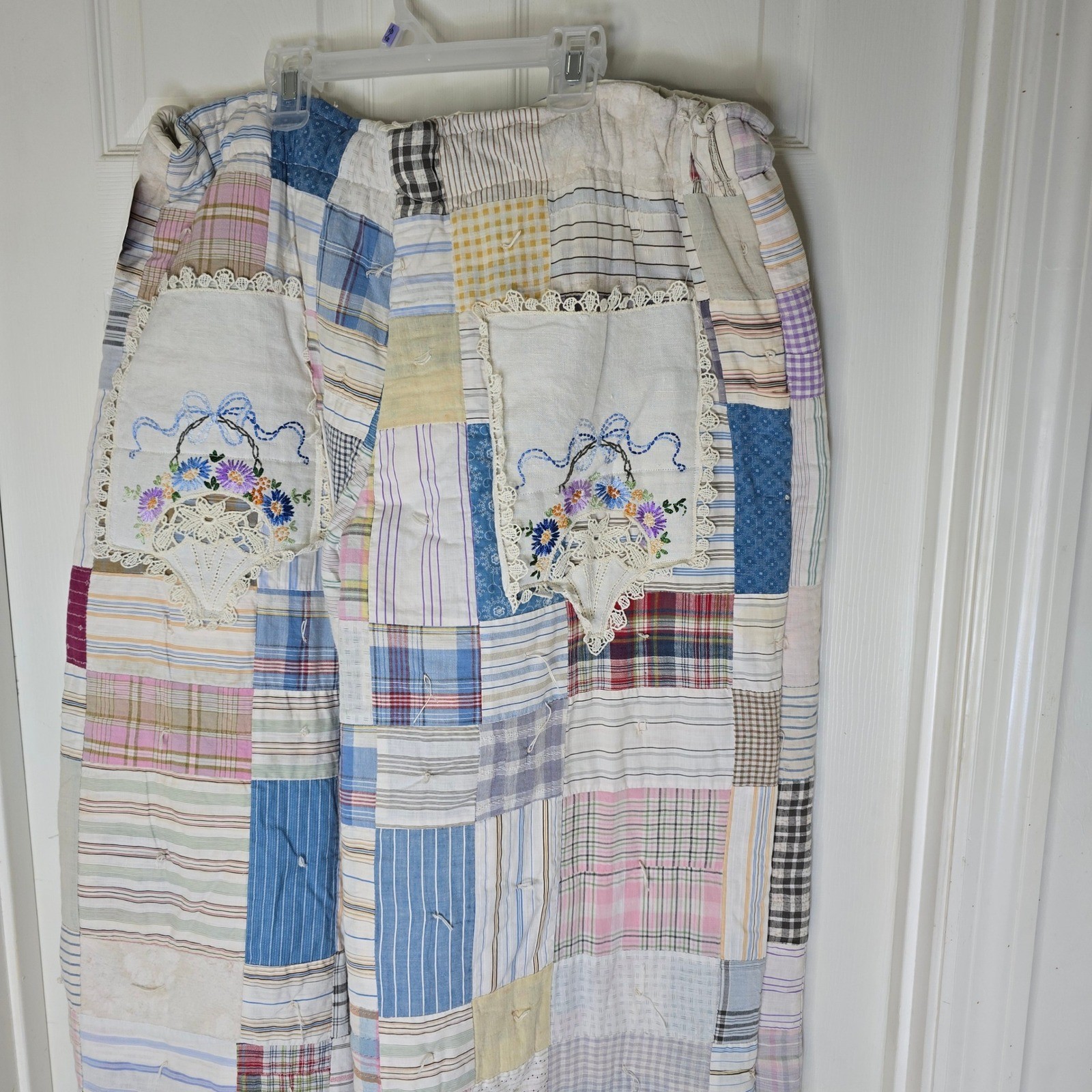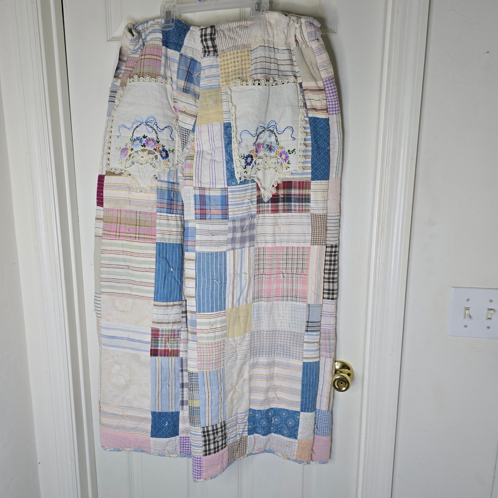 как выглядит Upcycled vintage quilt pants with embroidered pockets L-XL фото