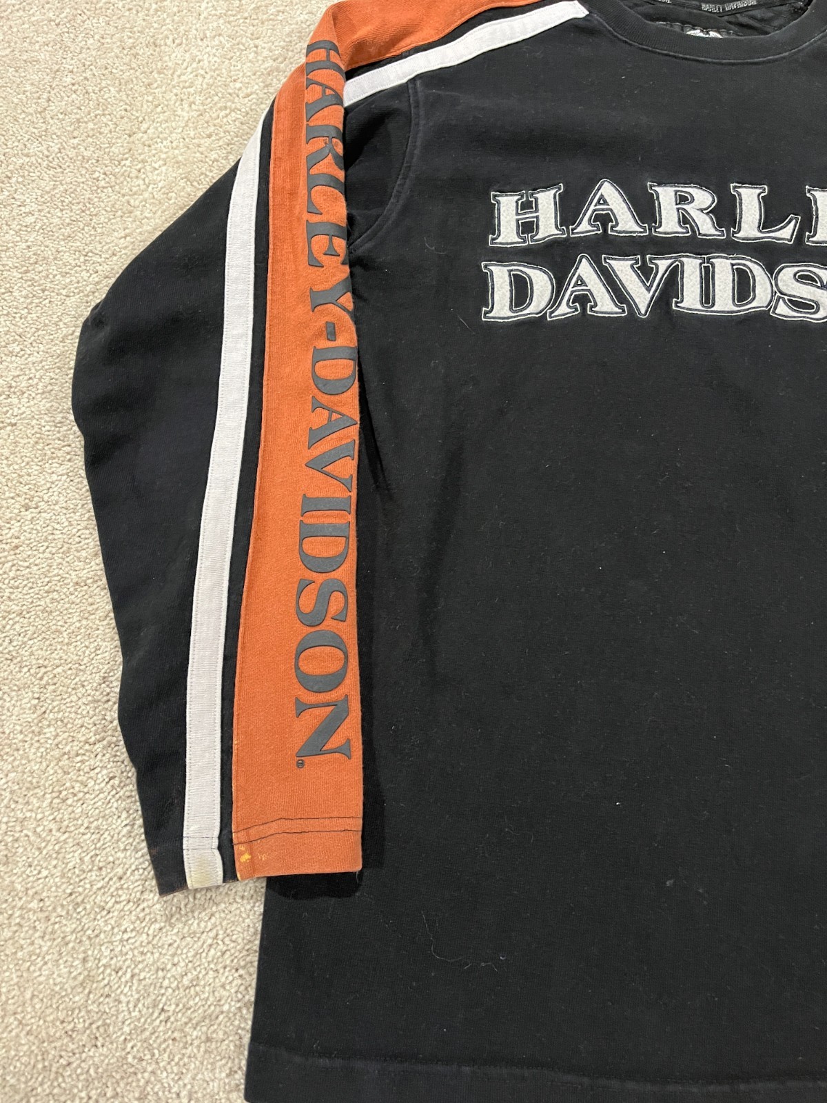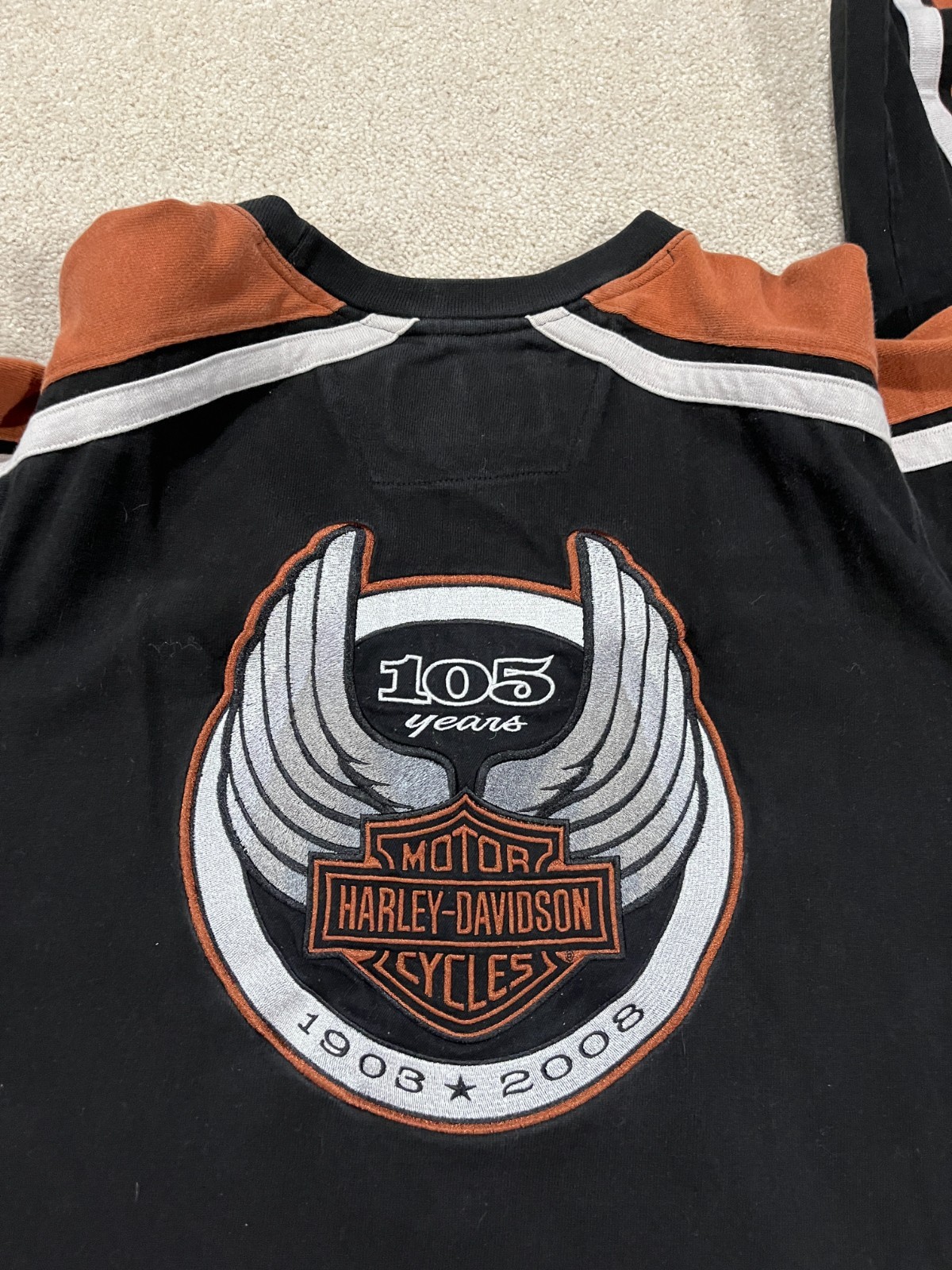 как выглядит Vtg Harley Davidson Sweatshirt Mens Medium Black Orange Embroidered Crew Neck фото