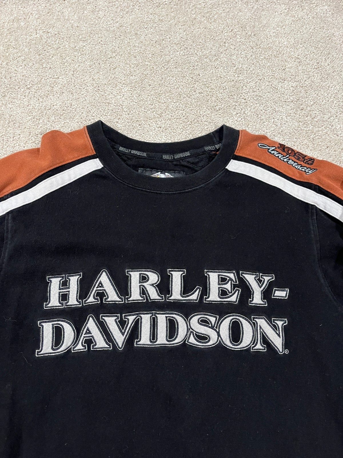 Vtg Harley Davidson Sweatshirt Mens Medium Black Orange Embroidered Crew Neck