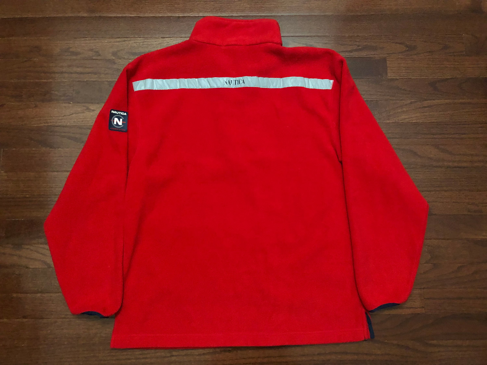 как выглядит VINTAGE 90s NAUTICA COMPETITION 1/4 ZIP FLEECE SWEATSHIRT MENS SMALL RED e фото