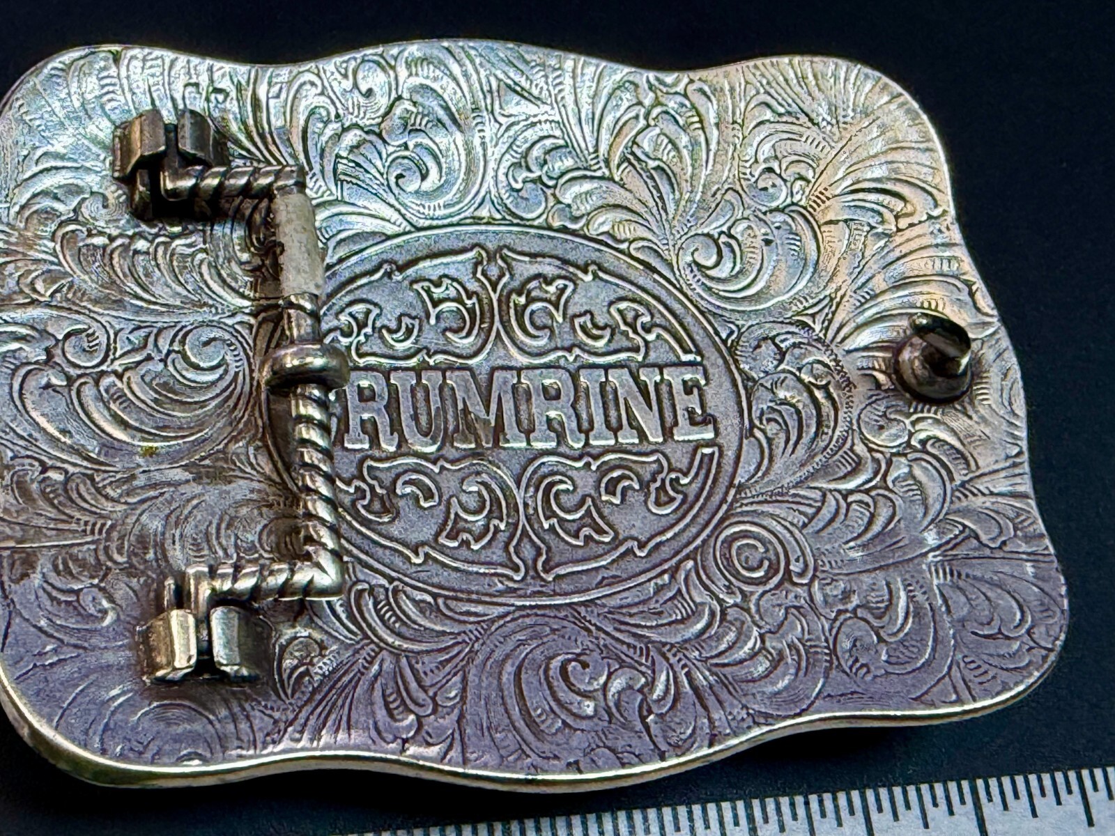 как выглядит Rodeo Cowboy Bull Rider Swirl Ornate Barbwire Border Crumrine Vtg. Belt Buckle фото