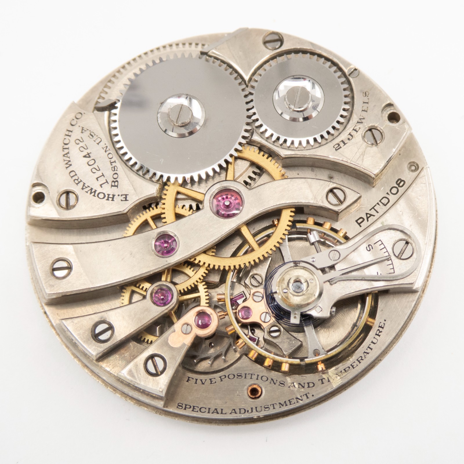 как выглядит E. Howard Series 8 12-Size 21-Jewel Antique Pocket Watch Movement, Runs фото