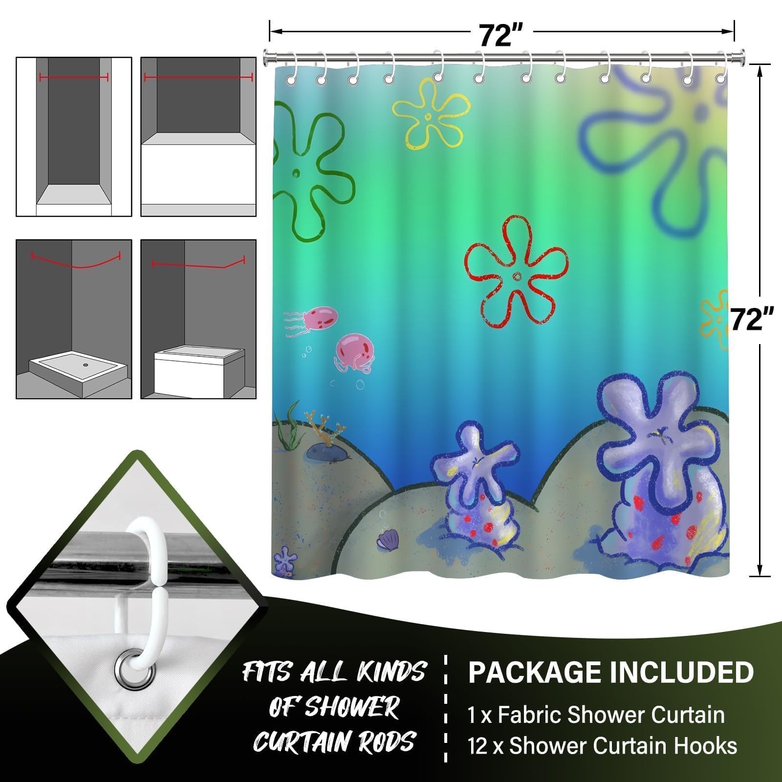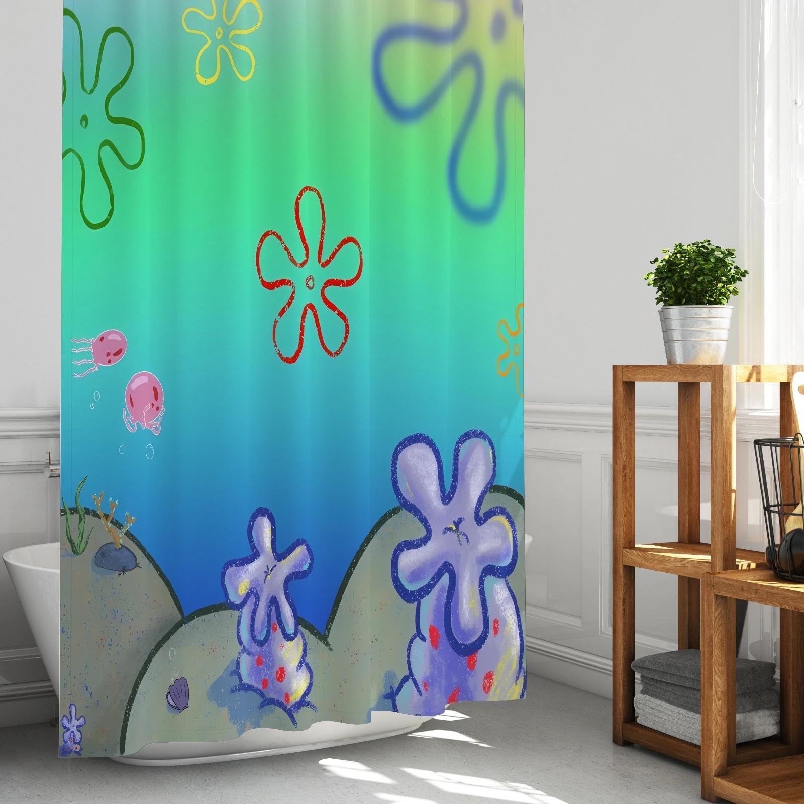 Green Ocean Shower Curtains,Cool Cartoon Anime Shower Curtains for Bathroom D...