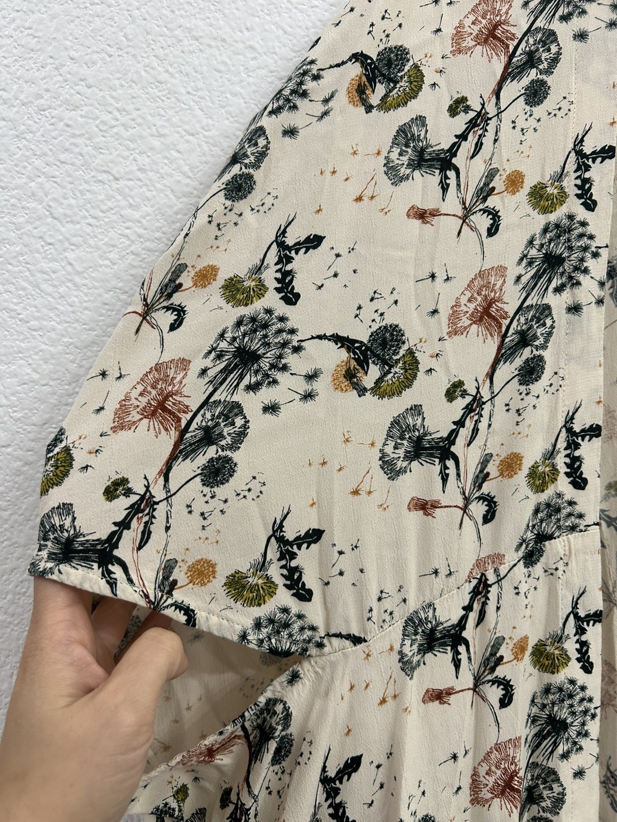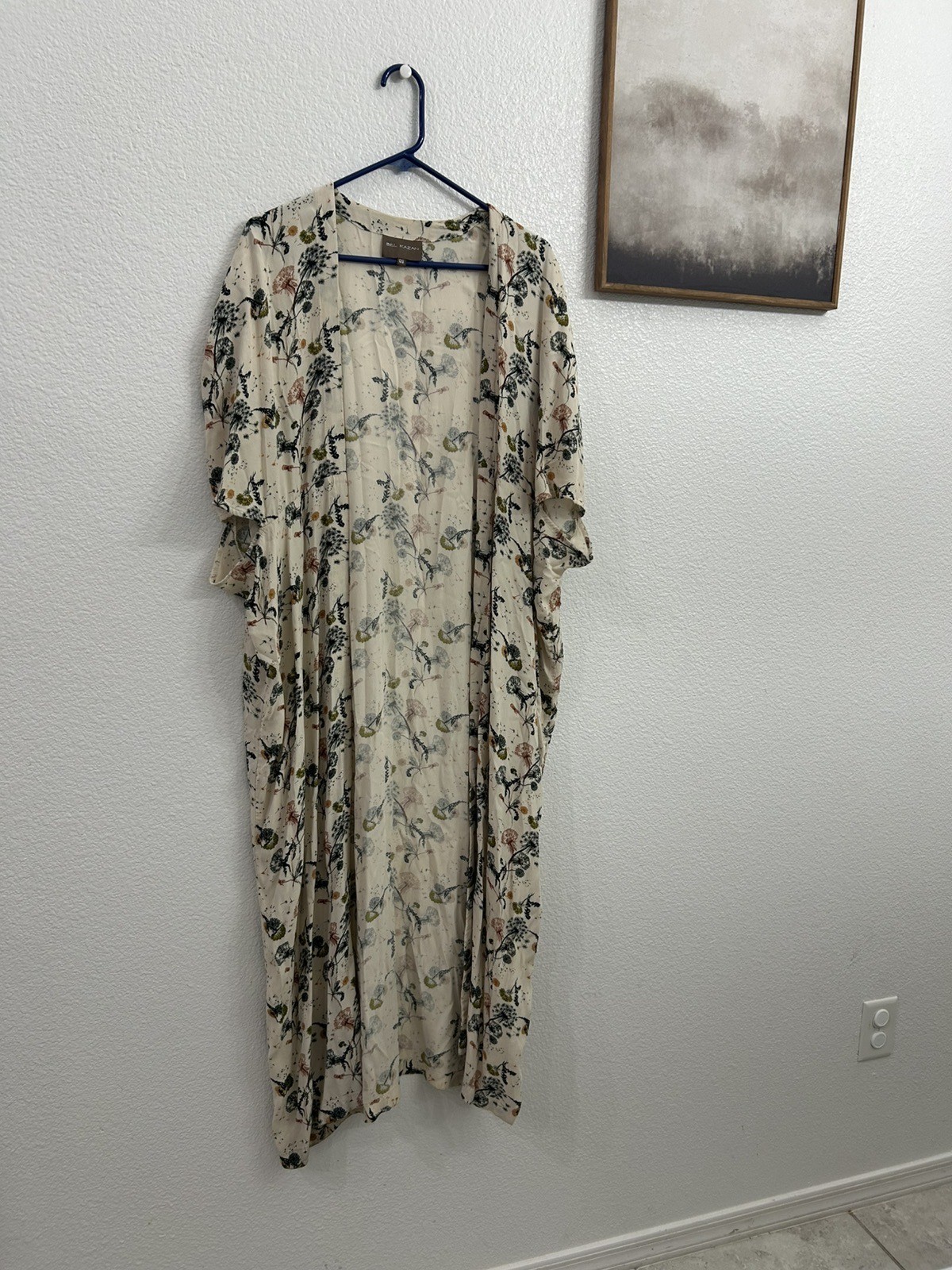 Bel Kazan O/S Long Kimono Duster Dandelion Ivory Botanical Anthropologie