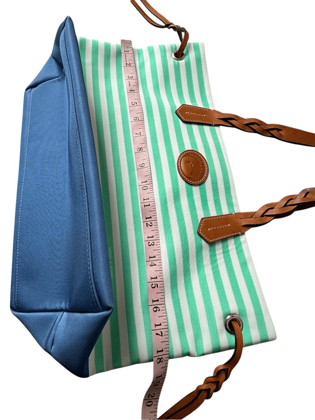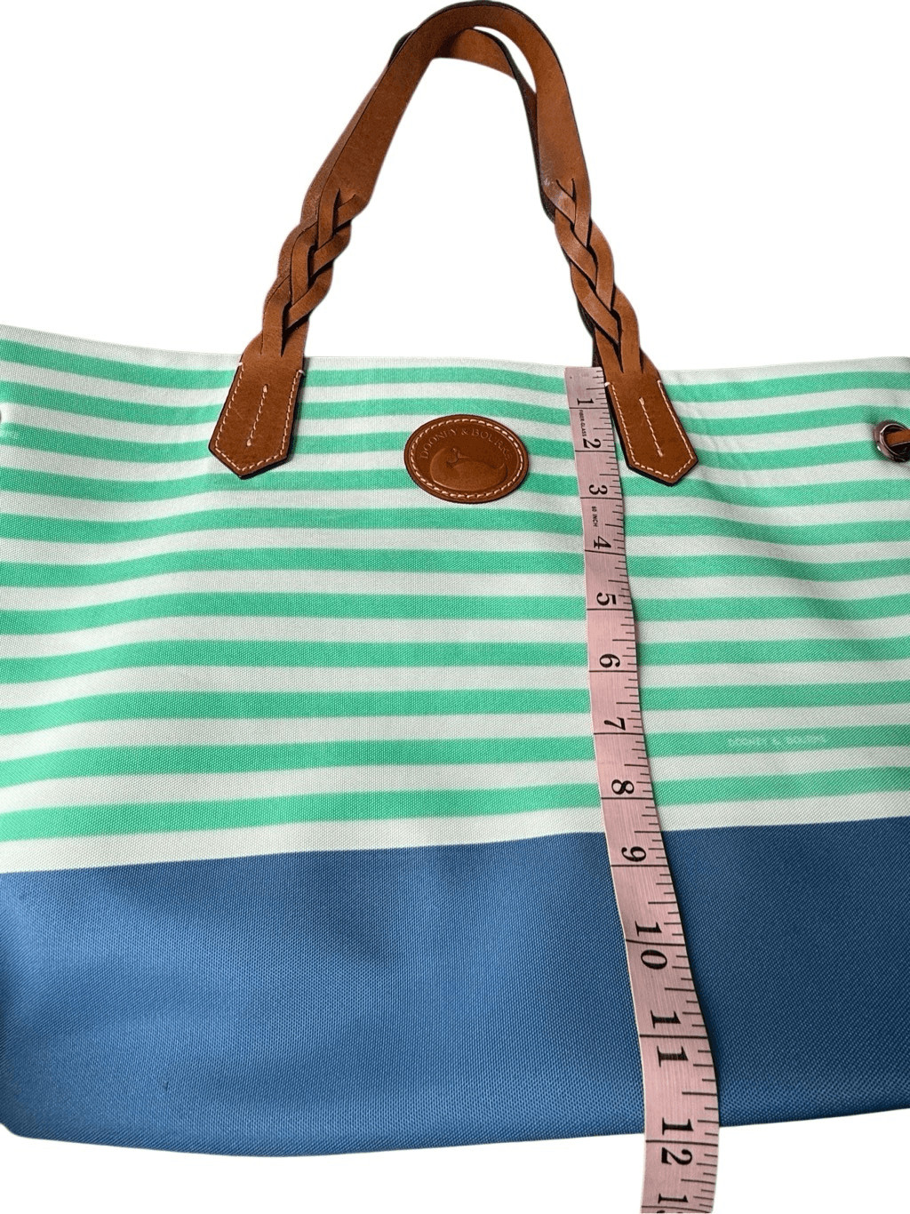 как выглядит Dooney Bourke Striped Nylon Sullivan Shopper Tote In Mint green, White, Blue фото