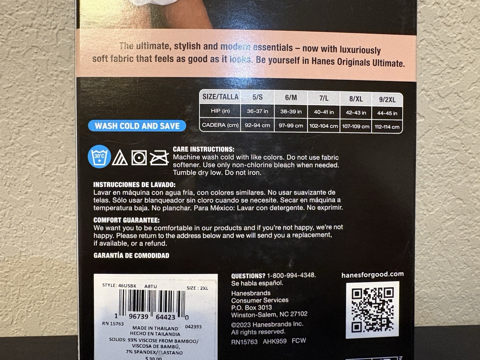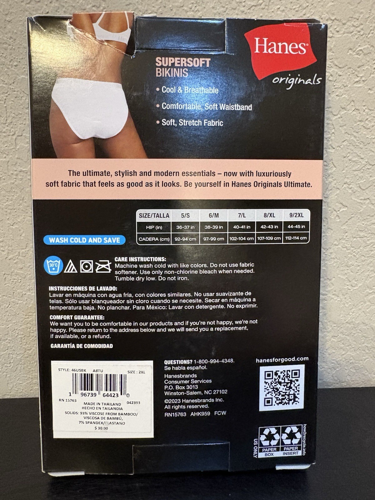 Hanes Women's Supersoft Bikini Underwear 3-Pack SZ 9/2XL Ultra Soft From Bamboo