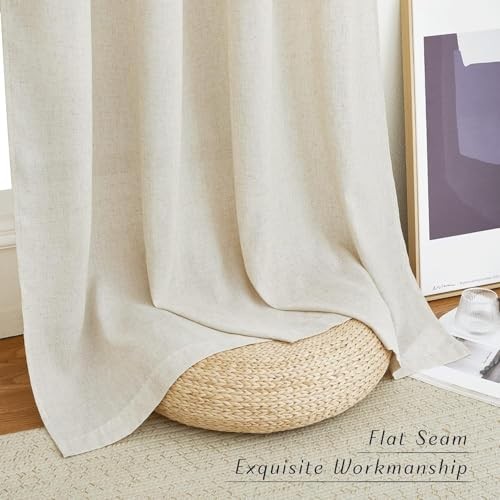 как выглядит Linen Cafe Curtains 45 inch Length, Thick Flax 55"W x 45"L Pack of 2 Natural фото