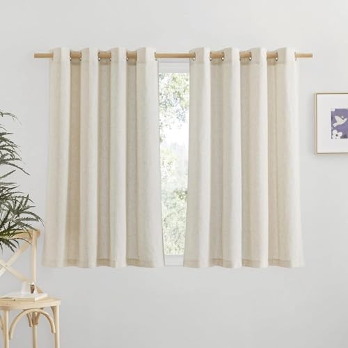 Linen Cafe Curtains 45 inch Length, Thick Flax 55W x 45L Pack of 2 Natural