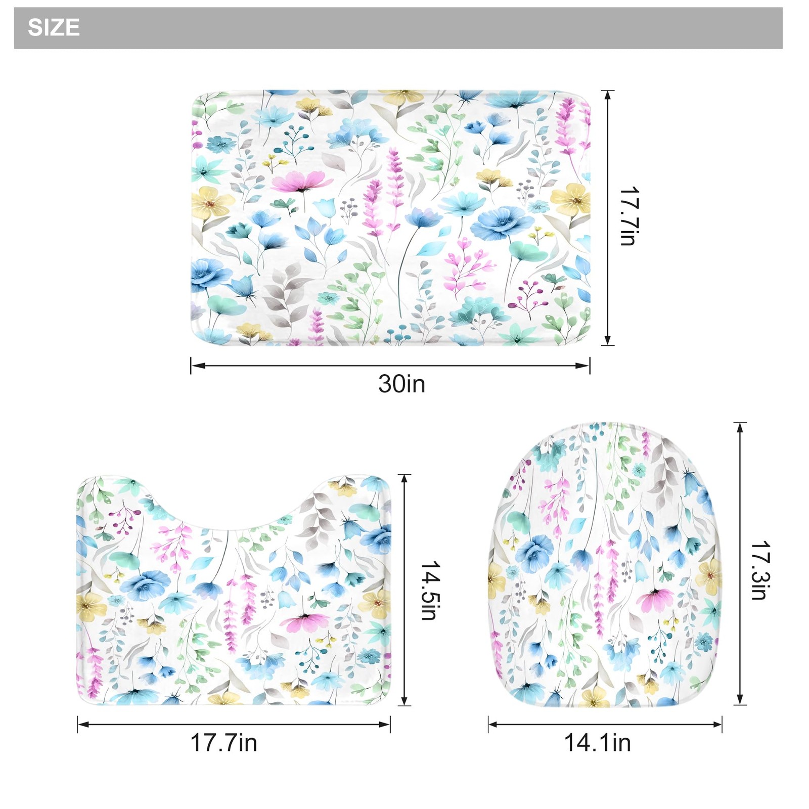 как выглядит Blue Floral Girls 4Pcs Shower Curtain Set with Lid Cover and Non-Slip Rugs,Fl... фото