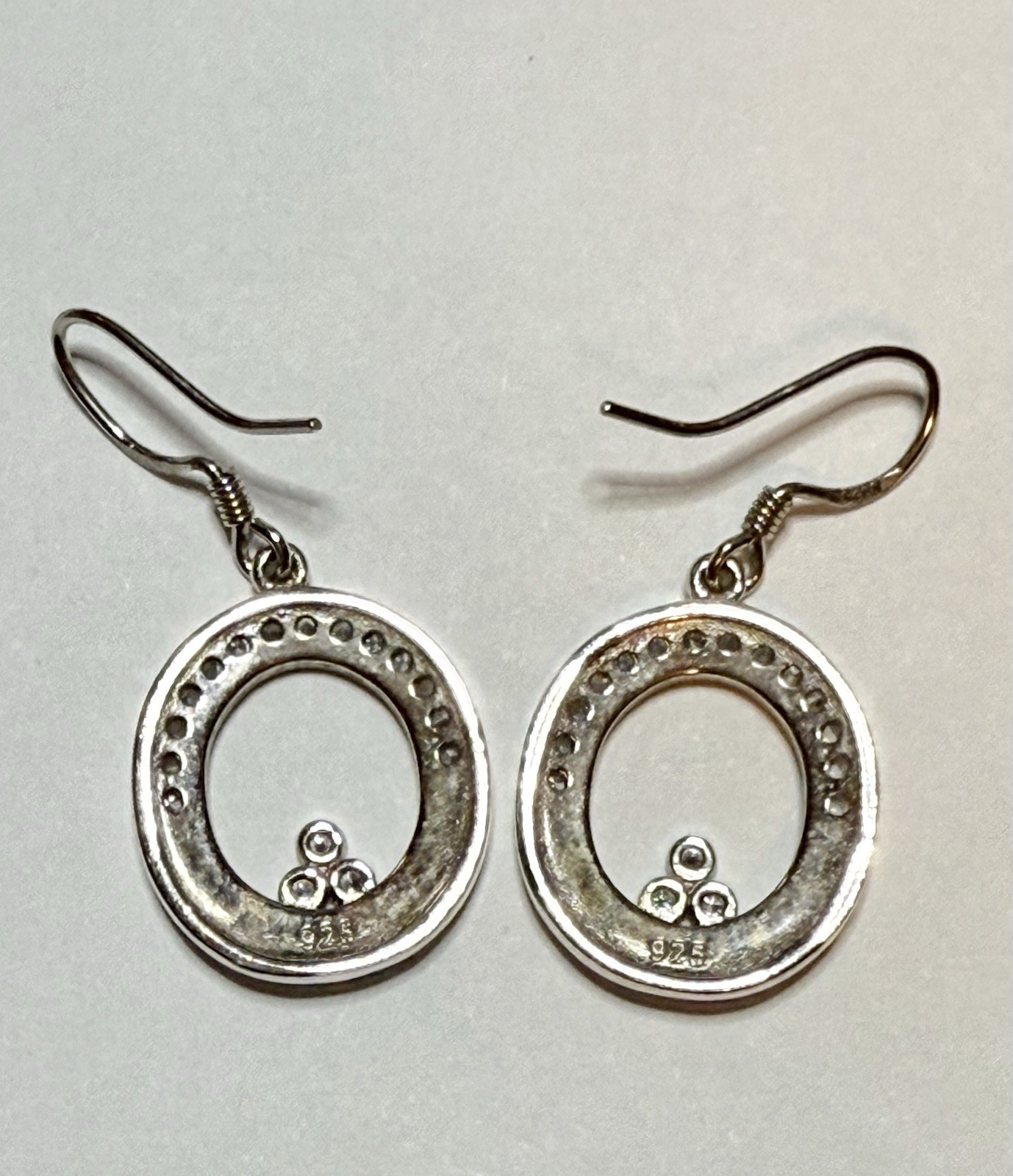 925 Sterling Silver Blue Fire OPAL Inlay Gem Open Circle Dangle 1.25 Earrings