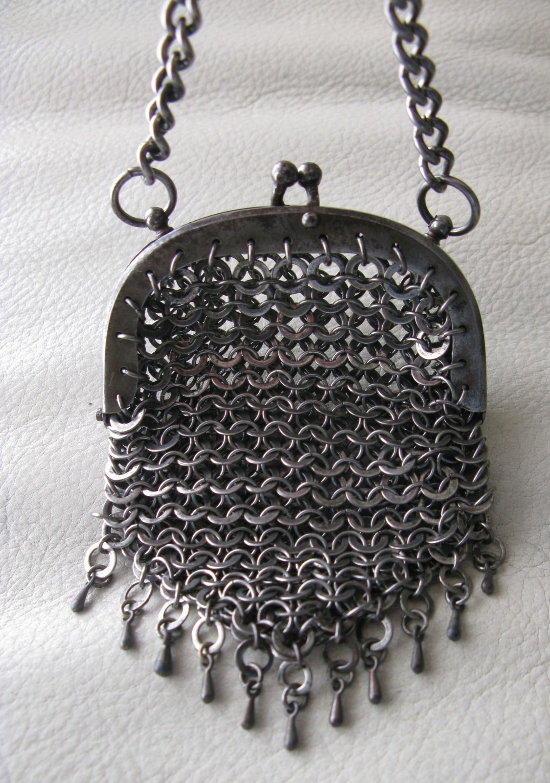 как выглядит Antique Chatelain Gun Metal Silver 11 Drop Tassel Flat Ring Coin Purse 1890s фото