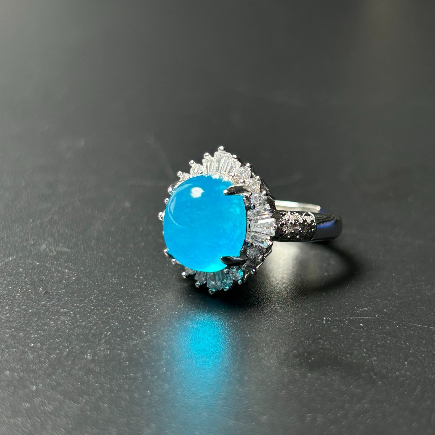 Natural Ice Blue Jade jadeite Woman Pigeon Egg Ring Adjustable Size
