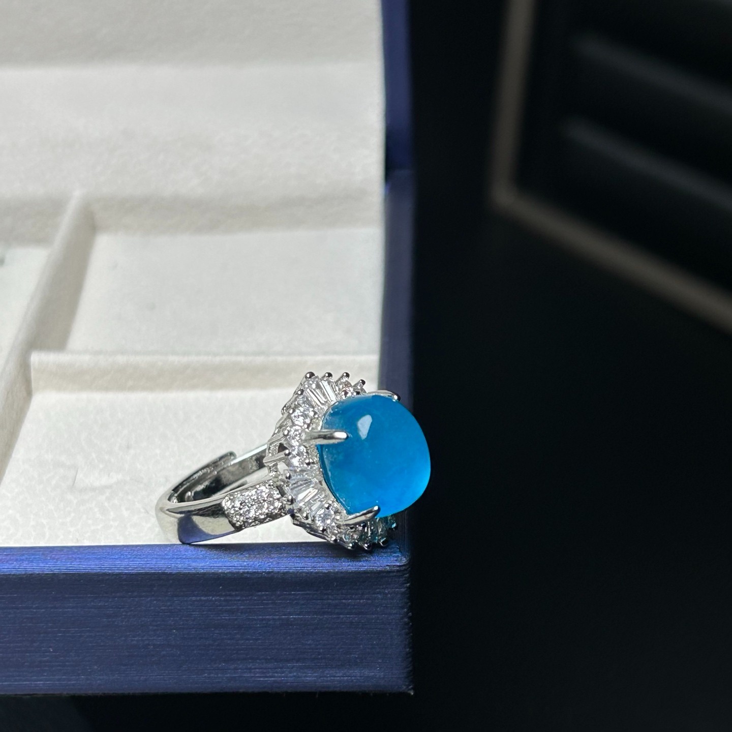 как выглядит Natural Ice Blue Jade jadeite Woman Pigeon Egg Ring Adjustable Size фото